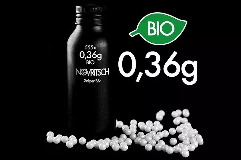 Kulki są w 100% biodegradowalne. Gruntowne badania i prace nad uzyskaniem certyfikatu trwały okrągły rok, dzięki temu nie ma żadnych wątpliwości, że kulki Novritsch BIO Sniper BBs są w pełni przyjazne dla środowiska.