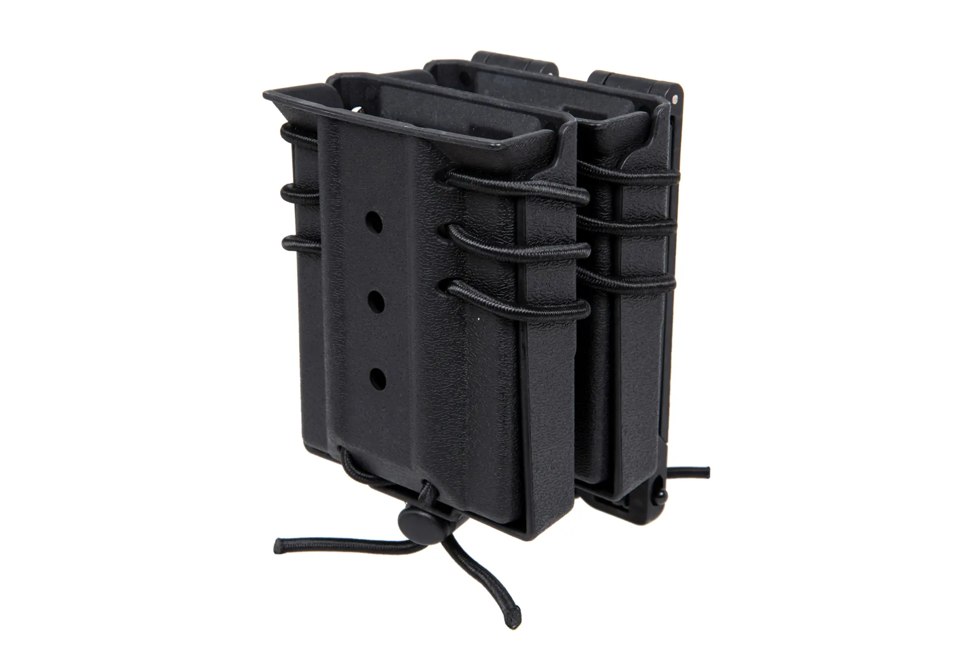 Wykonana z wytrzymałego tworzywa sztucznego ładownica typu fast mieszcząca dwa magazynki karabinowe typu M4/M16, AK lub inny, podobnych rozmiarów. Ładownica wyposażona jest w specjalną elastyczną linkę do regulacji “rozwarcia” ładownicy która lepiej dopasowuje się do zawartości i nie pozwala magazynkom wypaść. Ładownicę zamontować można na pasie o maksymalnej szerokości 45mm a także na oporządzeniu zgodnym z systemem MOLLE.