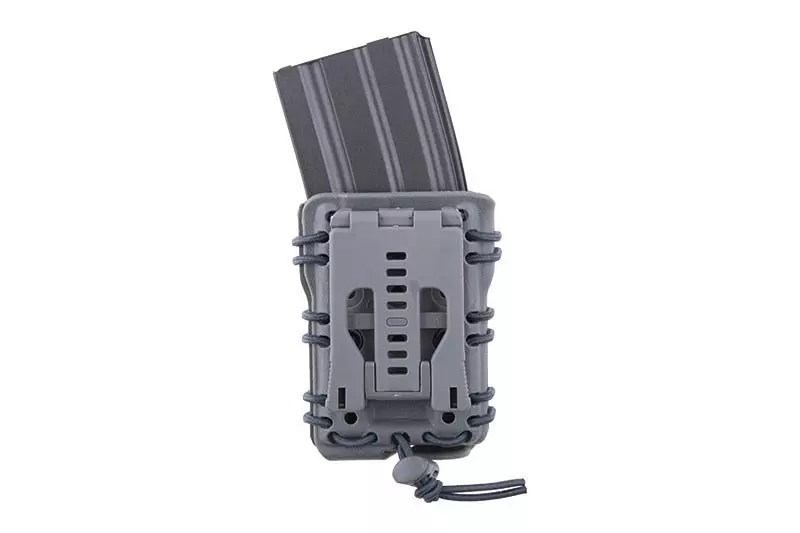 Wykonana z wytrzymałego tworzywa polimerowego przez Primal Gear ładownica na magazynek 5,56. Nie posiadają klap, co umożliwia błyskawiczne dobycie magazynka, a jednocześnie trzymają go pewnie i nie pozwalają na przypadkowe wypadnięcie, nawet po montażu “do góry nogami”. Zapewnia to konstrukcja ładownicy – składa się ona z dwóch połówek, mocno ściśniętych elastycznymi linkami z możliwością regulacji. System montażowy jest regulowany, pozwala to dopasować ładownicę do pasów taktycznych o różnej szerokości.