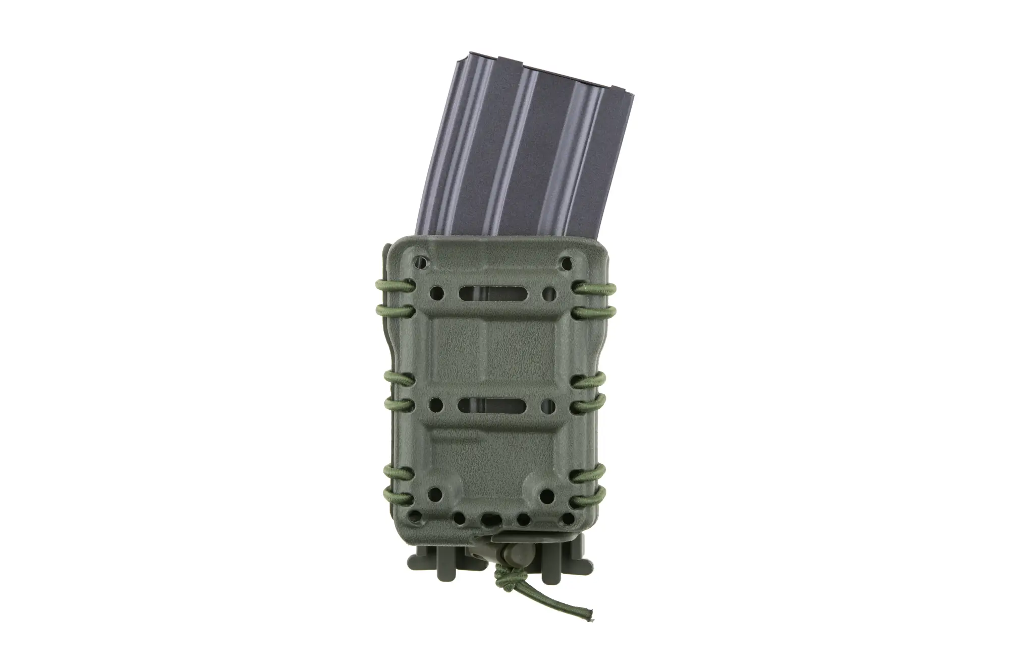 Wykonana z wytrzymałego tworzywa polimerowego przez Primal Gear ładownica na magazynek 5,56. Nie posiada klap, co umożliwia błyskawiczne dobycie magazynka, a jednocześnie trzyma go pewnie i nie pozwala na przypadkowe wypadnięcie, nawet po montażu “do góry nogami”. Zapewnia to konstrukcja ładownicy – składa się ona z dwóch połówek, mocno ściśniętych elastycznymi linkami z możliwością regulacji.