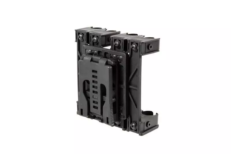 Wykonana z wysokiej jakości tworzywa sztucznego ładownica do nabojów strzelbowych APS. Pozwala na błyskawiczne dobycie łącznie 8 naboi w ułożeniu przyśpieszającym doładowanie strzelby. Montaż pozwala na założenie ładownicy na pas (szerokość w pełni regulowana do 60mm max) lub palsy MOLLE.
