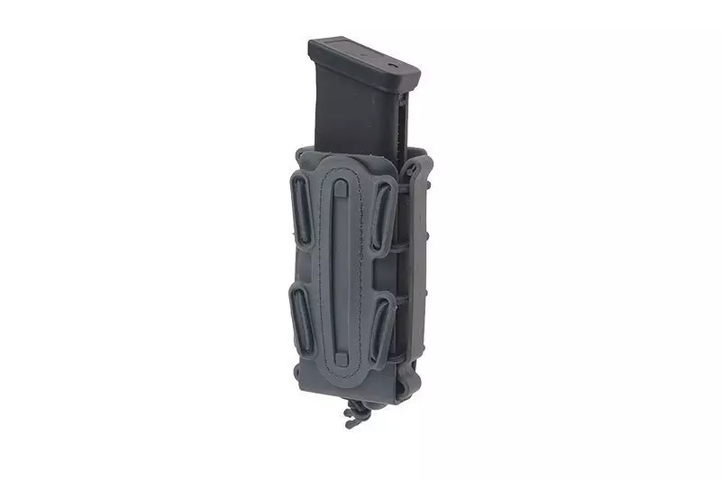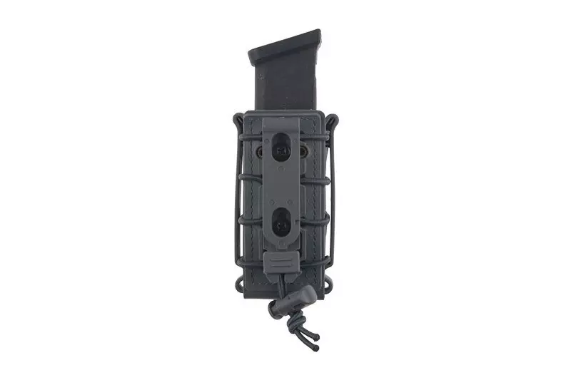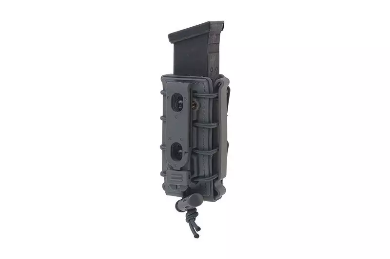 Wykonana z wytrzymałego tworzywa sztucznego ładownica typu fast mieszcząca jeden magazynek pistoletowy 9mm. Ładownica wyposażona jest w specjalną elastyczną linkę do regulacji “rozwarcia” ładownicy która lepiej dopasowuje się do zawartości i nie pozwala magazynkom wypaść. Ładownicę zamontować można na pasie o maksymalnej szerokości 40mm.
