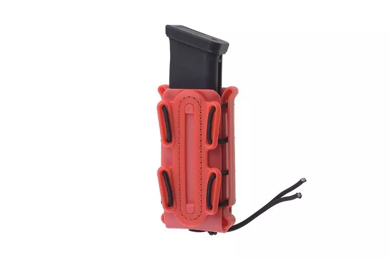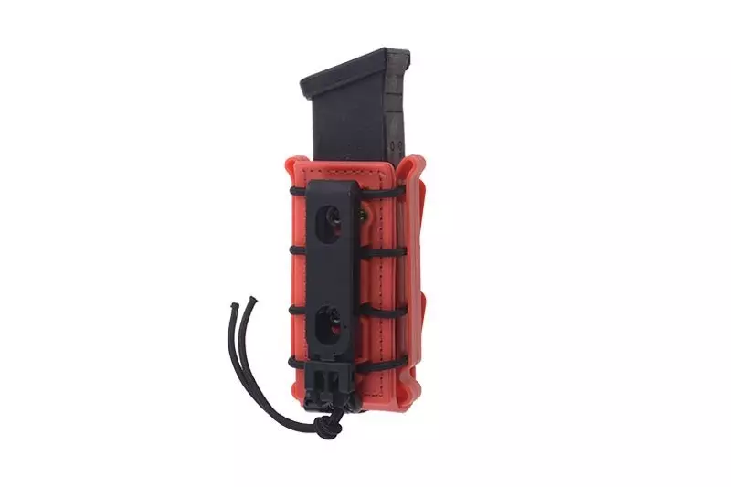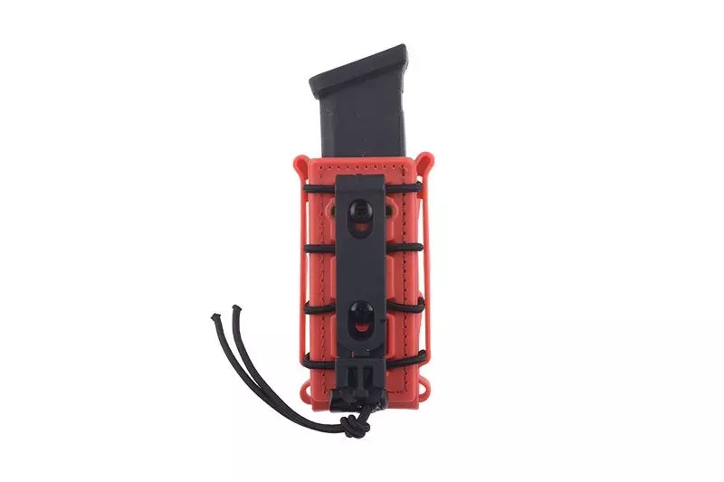 Wykonana ze specjalnego, wytrzymałego ale i elastycznego tworzywa sztucznego ładownica typu fast mieszcząca jeden magazynek pistoletowy/dwurzędowy. Ładownica wyposażona jest w specjalną elastyczną linkę do regulacji “rozwarcia” ładownicy która lepiej dopasowuje ładownicę do zawartości i nie pozwala magazynkom wypaść. Ładownicę zamontować można na pasach o maksymalnej szerokości 45mm i na oporządzeniu zgodnym z systemem MOLLE.