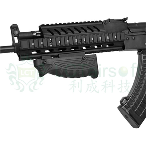 The front enlarged grip in LCT’s new design attaches to the RIS rail and also serves as a battery storage compartment!
