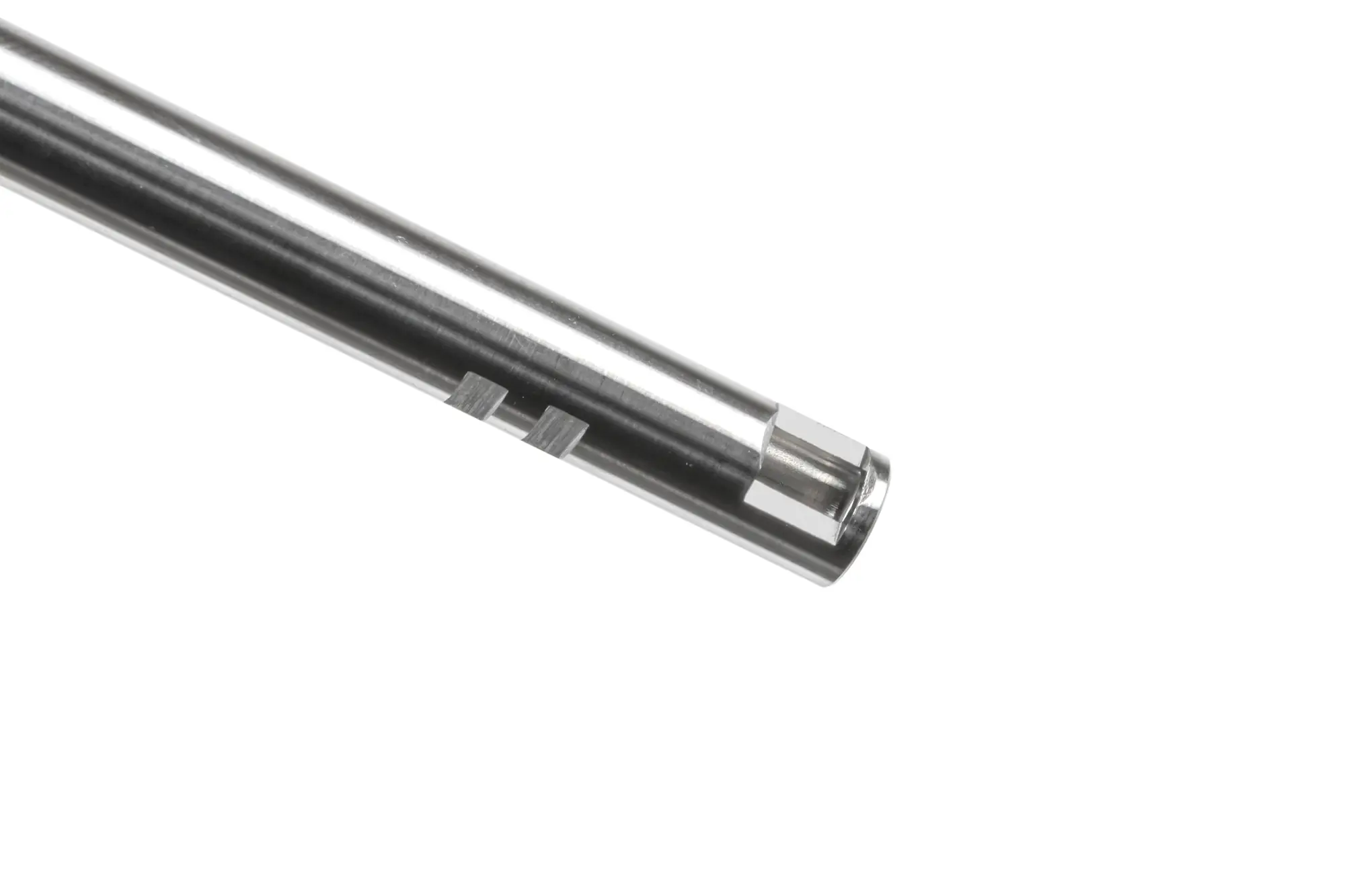 Lufa posiada okno Hop-Up o wymiarach 6×4 mm, dodatkowe wyprofilowanie dla lepszego dopasowania gumki Hop-Up, średnice wewnętrzną 6.01 mm oraz długość 275 mm