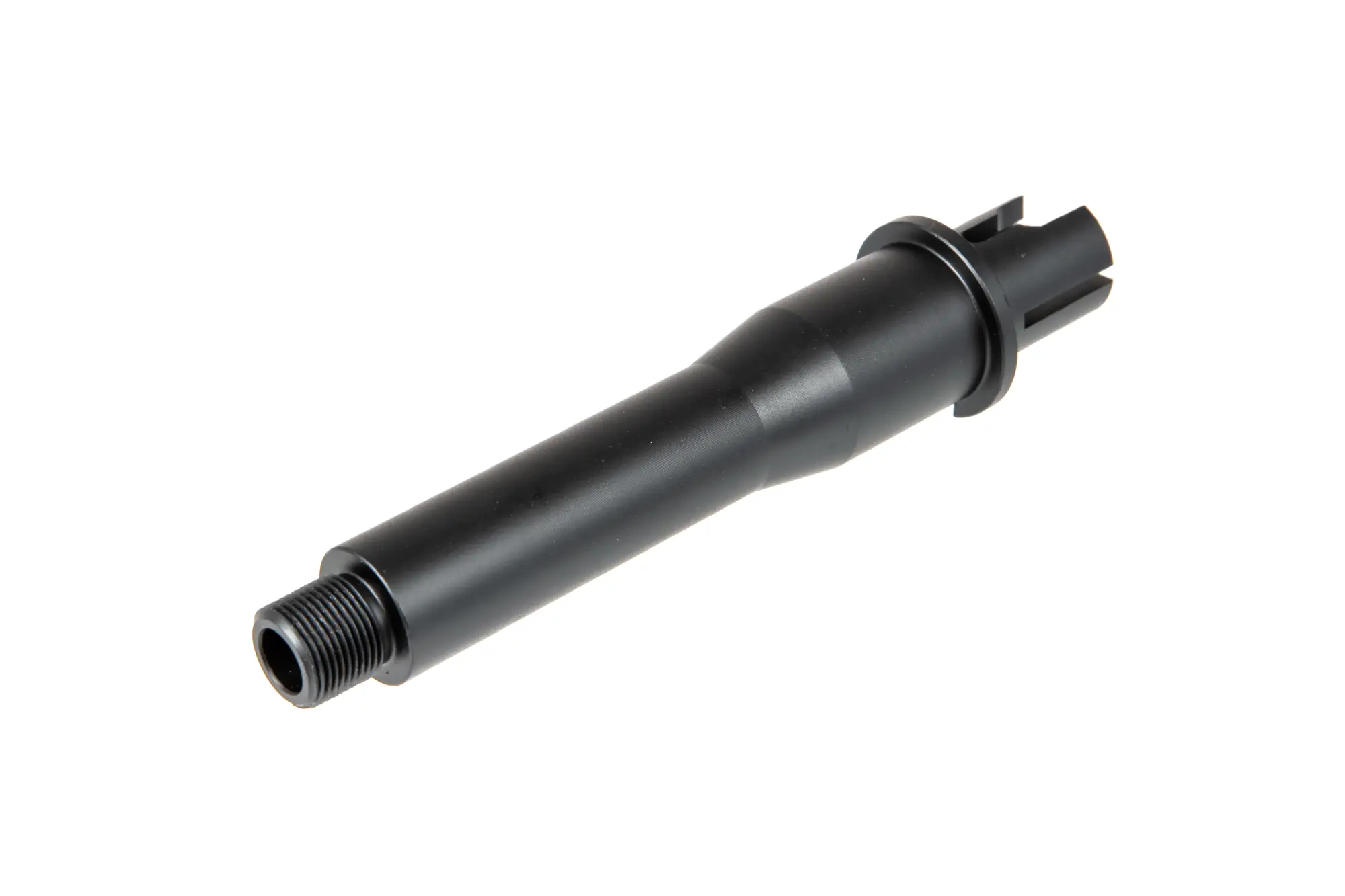 Dokładnie wykonana z wytrzymałego aluminium lufa zewnętrzna o długości 140mm. Lufa zakończona jest gwintem 14mm CCW (lewy). Lufa przeznaczona jest do montazu w replikach typu M4/M16.