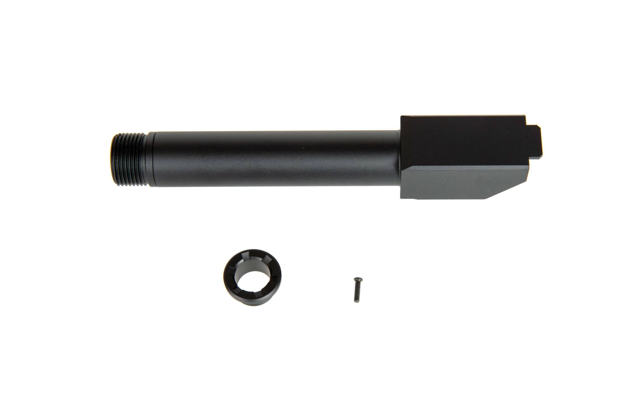 Najwyższej jakości lufa zewnętrzna, wykonana w technologii CNC. Dedykowana do replik Glock 19X produkcji Umarex, która montowana jest w zupełnie inny sposób niż tradycyjne lufy. Nineball zaprojektował bowiem produkt który jest przykręcany bezpośrednio do komory Hop-up repliki. Takie rozwiązanie pozwala uzyskać maksymalne skupienie, a także uniknąć niepotrzebnego tarcia lufy o zamek. Mniejsze opory zmniejszają zużycie gazu, zwiększają prędkość cyklu zamka a także podnoszą kulturę pracy.