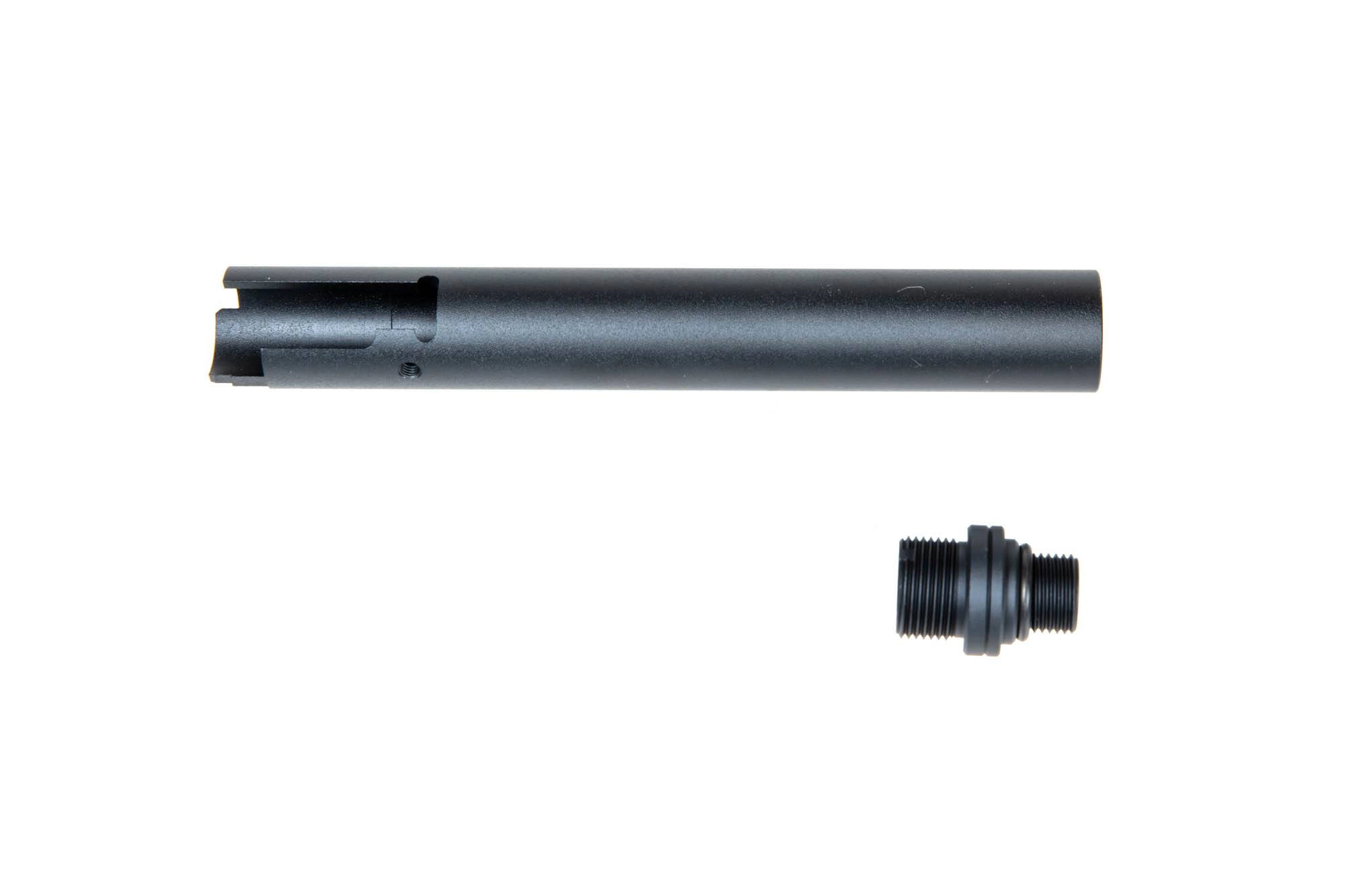 Oprócz tego lufa wyposażona jest w gwint 11CW wraz z zaślepką, a także w przejściówkę na zewnętrzny gwint 14CCW. Dzięki temu możemy zastosować większość dostępnych na rynku tłumików, tracerów, kompensatorów czy innych akcesoriów.