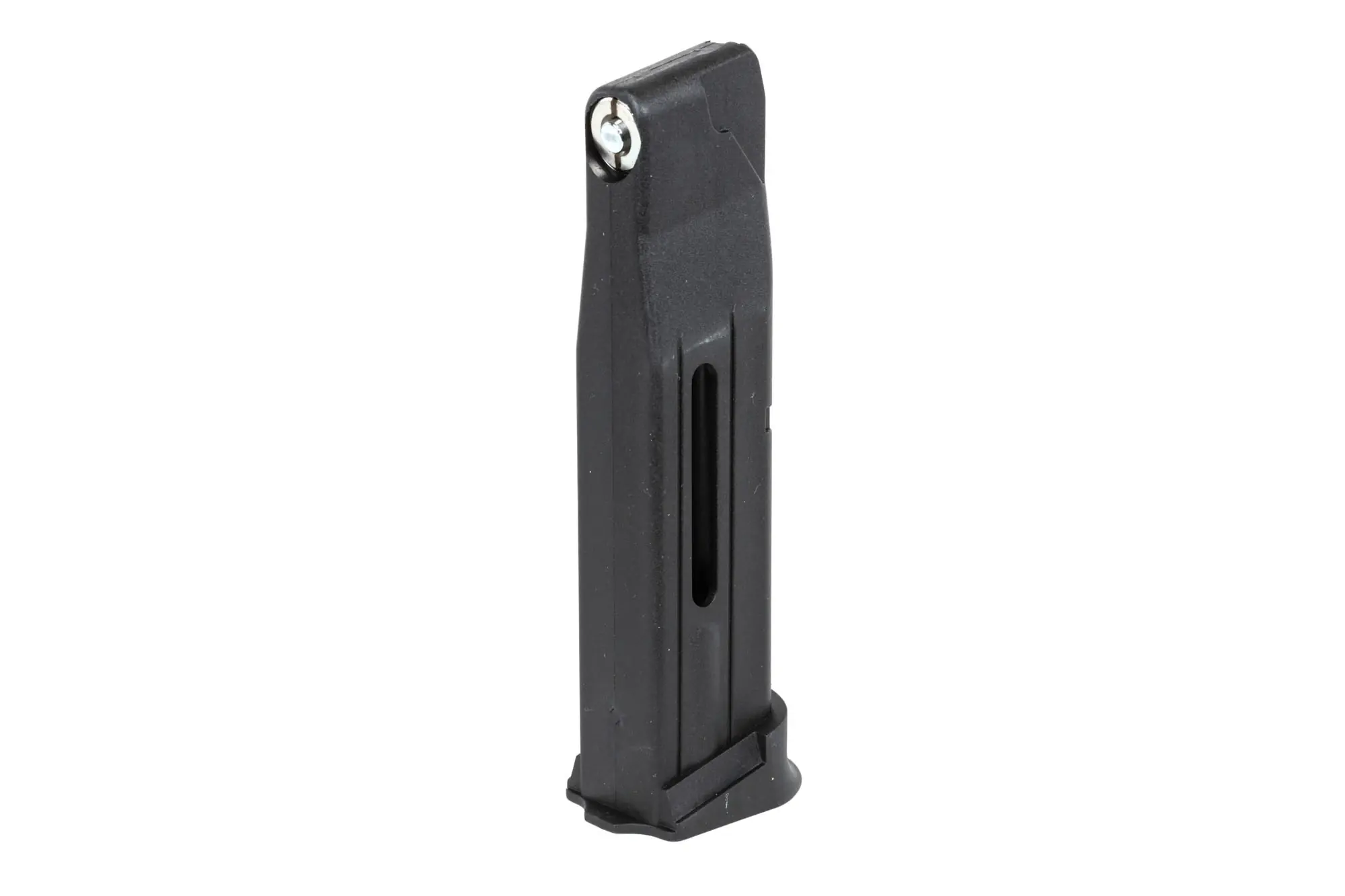 Wykonany z wytrzymałego polimeru przy współpracy Cybergun oraz Swiss Arms, magazynek zasilany kapsułą CO2 na 15 kulek do pistoletów airsoftowych SAP 2022.