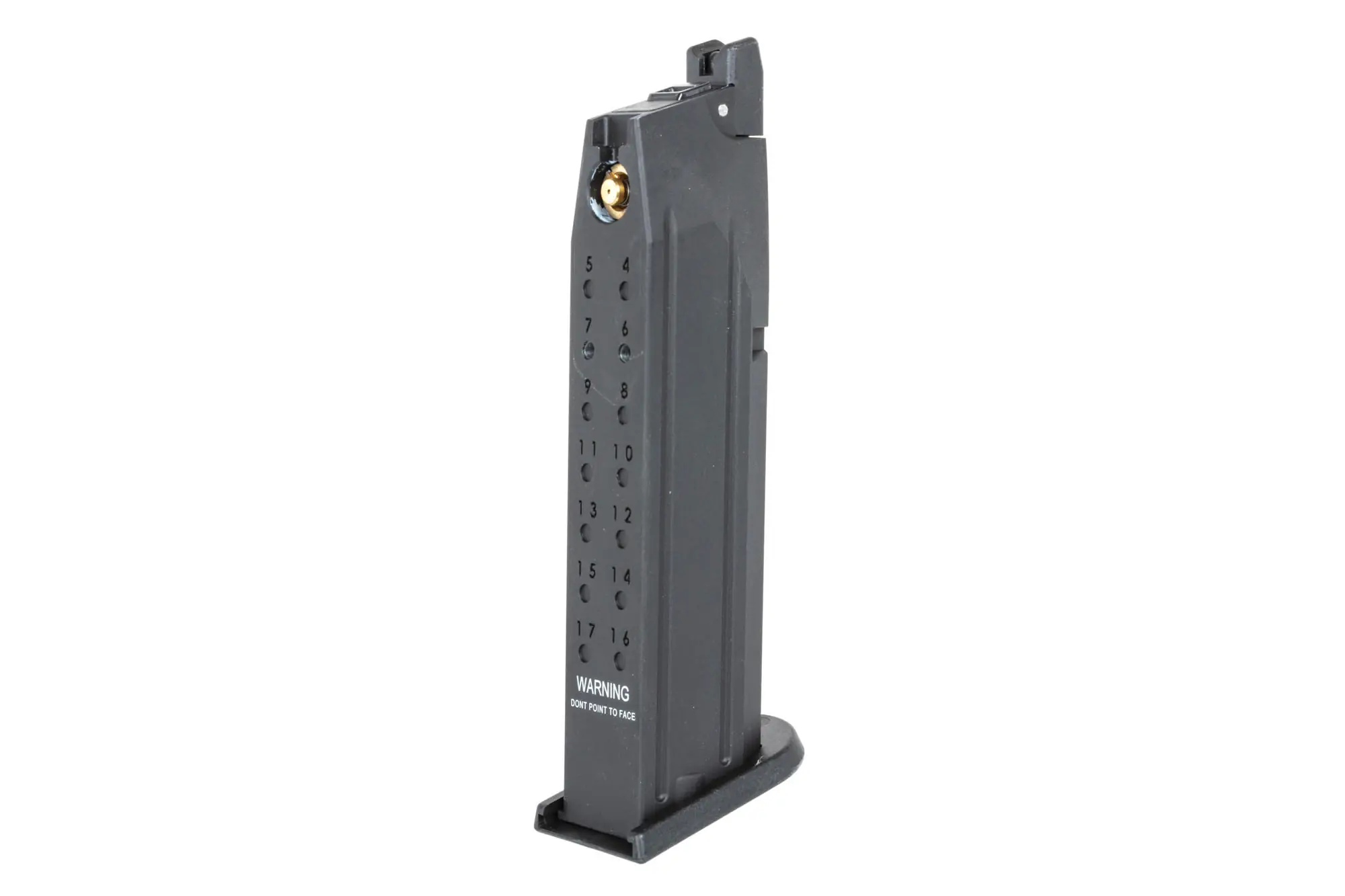Magazynek wykonany z metalu (korpus) oraz tworzywa (stopka), zasilany jest kapsułą CO2, mieści 24 kulki.