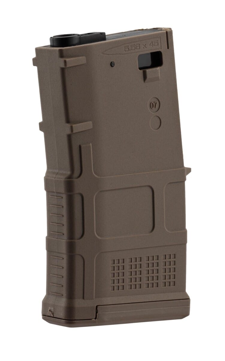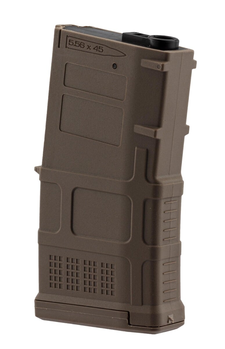 Krótki magazynek M4 Stanag o zmiennej pojemności 20/70 kulek – zmian pojemności odbywa się przez przesunięcie suwaka.