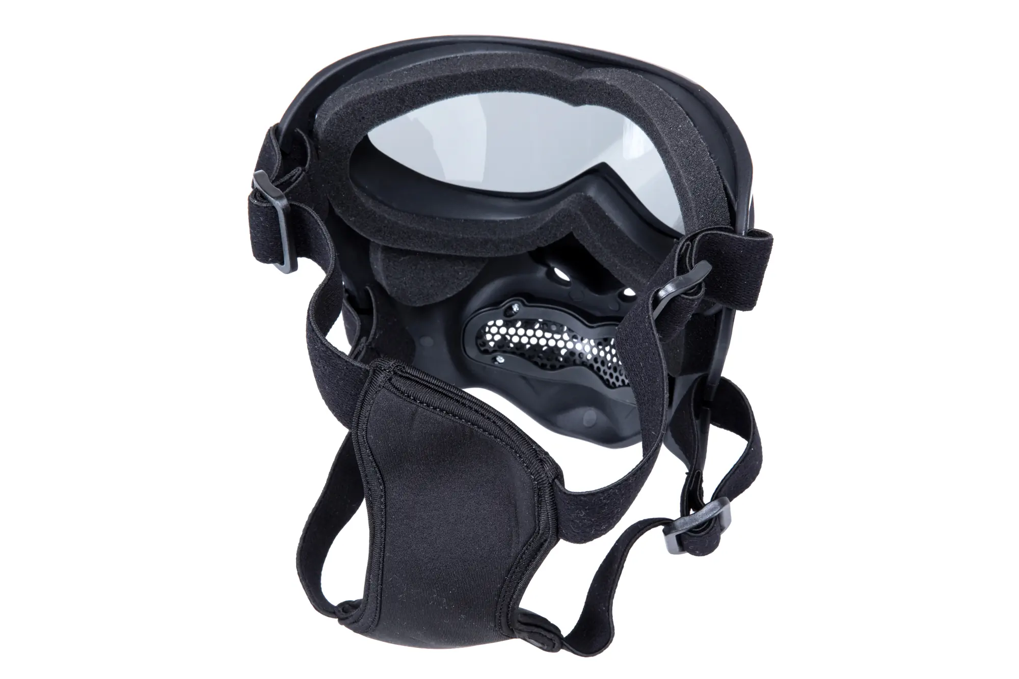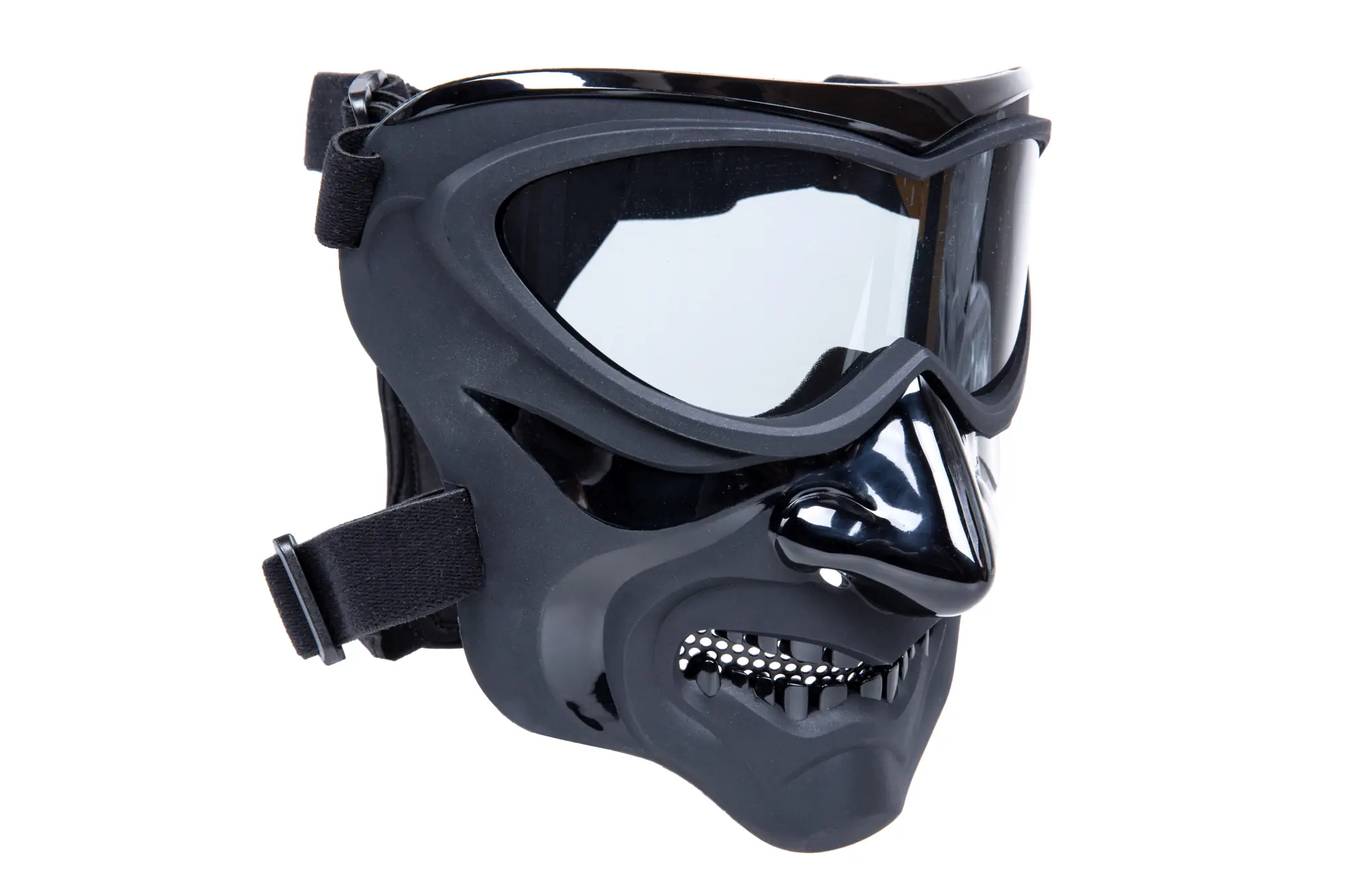 W skład zestawu wchodzą 2 komplety pasków – jeden zestaw pozwala na doczepienie maski do hełmu/kasku taktycznego, drugi zaś pozwala na noszenie maski na głowie.