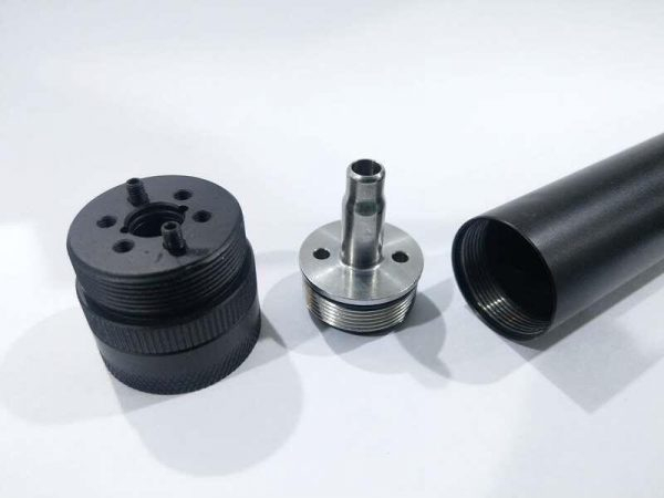In addition to allowing the attachment of a silencer with a 14-mm CCW thread, this adapter also includes an integrated wrench for easy removal of the cylinder head.It is crafted from durable 6061 aluminum via CNC machining. The adapter combines lightweight construction with high strength, and the black anodized finish ensures an elegant appearance and long-lasting durability even under tough conditions.It also includes a thread protector cap, enabling the adapter to be used without a silencer while adding an aggressive look to the VSR rifle.