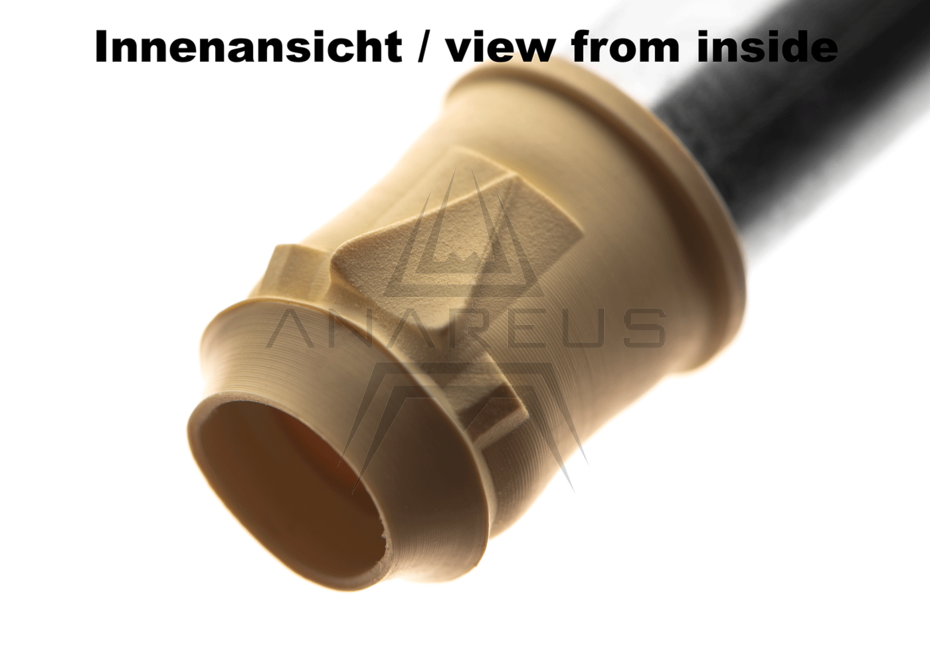 HOT SHOTHybrid bucking designed to use GBB/VSR barrels in AEG hop-up chambers, allowing you to pair, for example, an ML Crazy Jet inner barrel with a MAXX M4A Pro AEG chamber. However, it is not suitable for AEG barrels. The protrusion shape is the same as SUPER MACARON with centering ribs, making it designed for accuracy. Available in a lips variant suitable for AEG weapons or a variant without lips for GHK gas rifles. The manufacturer also states that the HOT SHOT and COOL SHOT buckings are compatible with sniper rifle chambers such as the Silverback SRS (standard and FAST versions).