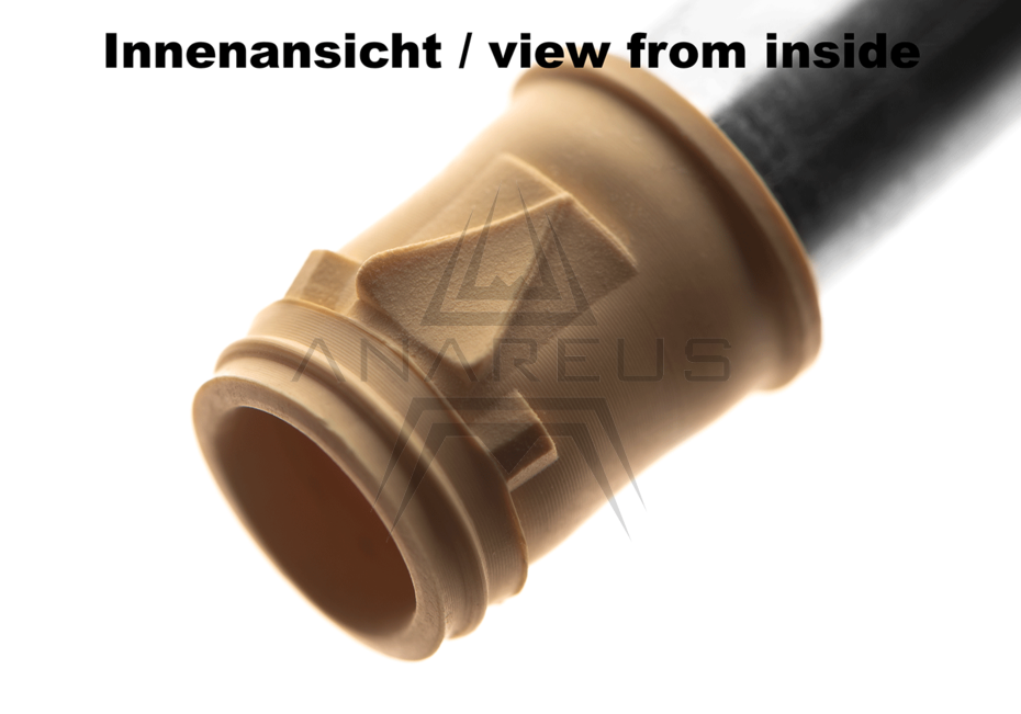 HOT SHOTHybrid bucking designed to use GBB/VSR barrels in AEG hop-up chambers, allowing you to pair, for example, an ML Crazy Jet inner barrel with a MAXX M4A Pro AEG chamber. However, it is not suitable for AEG barrels. The protrusion shape is the same as SUPER MACARON with centering ribs, making it designed for accuracy. Available in a lips variant suitable for AEG weapons or a variant without lips for GHK gas rifles. The manufacturer also states that the HOT SHOT and COOL SHOT buckings are compatible with sniper rifle chambers such as the Silverback SRS (standard and FAST versions).