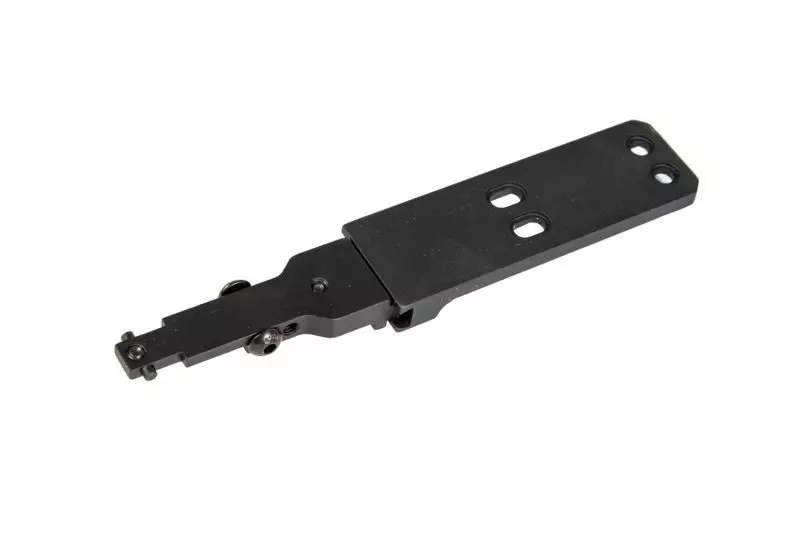 Wykonany z lekkiego aluminium montaż na kolimatory Aimpoint przeznaczony do montażu w replikach AK. Montaż montuje się w miejscu szczerbinki repliki i zabezpiecza dołączonymi w zestawie śrubami.