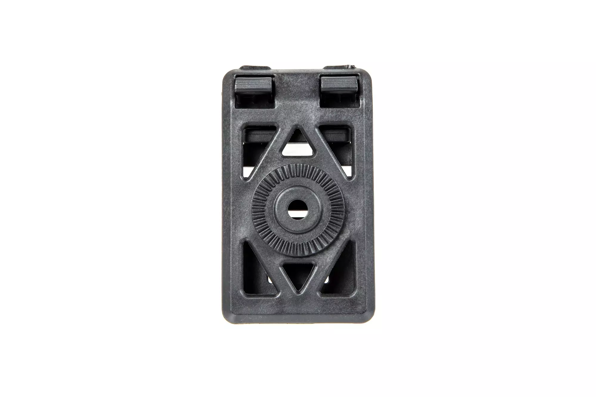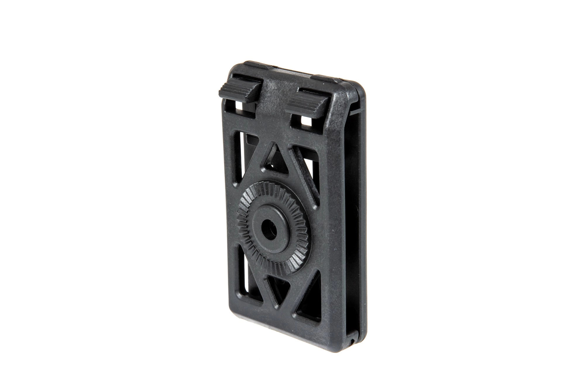 Wykonany z wytrzymałego tworzywa przez firmę Amomax montaż na pas kompatybilny z wszystkimi produktami tej marki wyposażonymi w system rotacyjny.