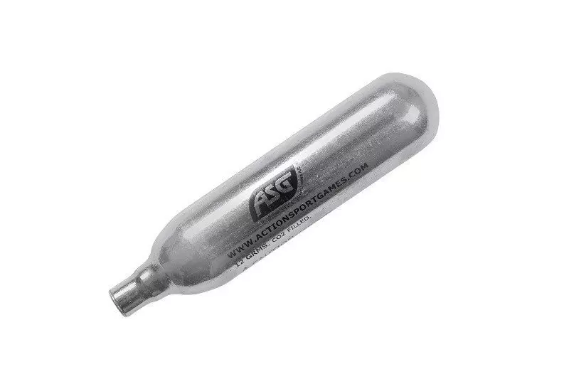 Nabój CO2 o pojemności 12 gramów, przeznaczony do zasilania replik airsoftowych, wiatrówek, karabinków RAM, markerów paintballowych.