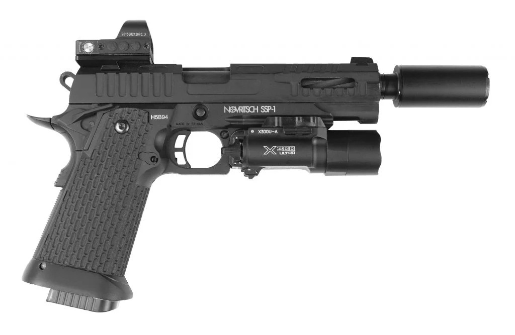 Do you want to add a suppressor to your SSP1, SSP2 or SSP5 pistol? Looking for a simple and solid solution? Need a precisely machined adapter from durable material? The Novritsch CNC adapter for SSP Hi-Capa Series allows you to attach any suppressor with a 14mm CCW thread. The adapter is designed for Novritsch Hi-Capa pistols SSP1, SSP2, SSP5 and other pistols with a 12mm CCW thread. When mounting on the SSP1, we recommend using only short suppressors due to the moving outer barrel (see photo).