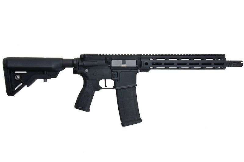 The Polymer Version features a high-quality polymer body with a matte finish for a realistic appearance. Reinforced with fiberglass, it is both lightweight and durable. The outer barrel is metal. Thanks to the ergonomic AR15 design and modern SSR4 construction, the rifle ensures comfortable handling and easy control. The M-LOK handguard allows mounting of various accessories like grips, AN/PEQ boxes, flashlights, etc. With the adjustable Crane stock, the rifle is ready for larger batteries (Buffer Stick, Nunchuck, or Crane types). Overall, it combines low weight, excellent internals, and attractive price.