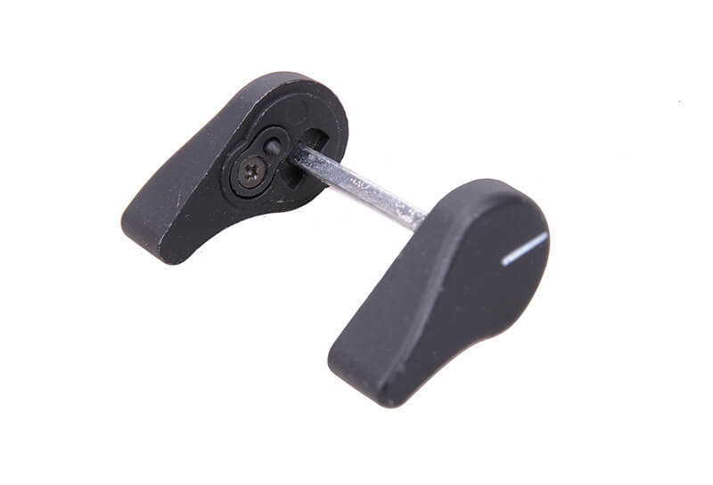 Obustronny selektor ognia przeznaczony do replik typu MP5. W skład zestawu wchodzą dwie dźwignie selektora oraz trzpień mocujący wykonany z metalu.