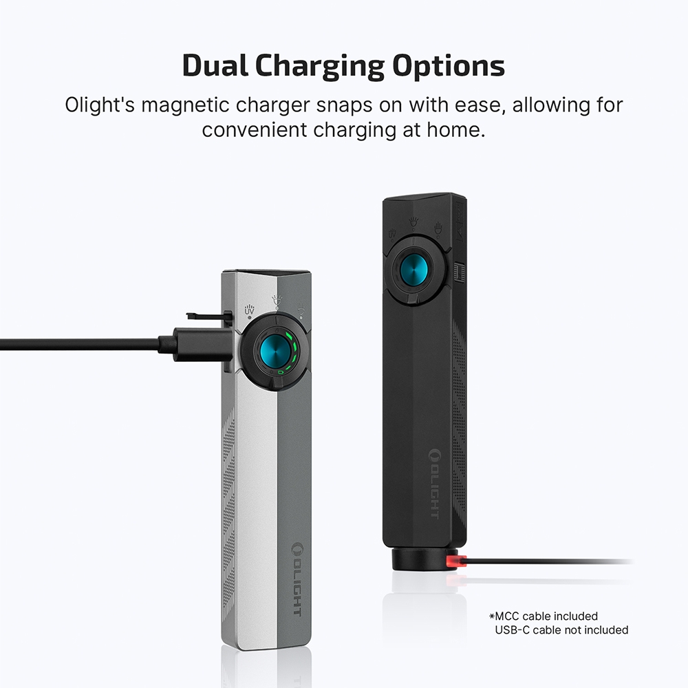 Dual charging:USB-C and magnetic OLIGHT MCC charging system (MCC cable included).