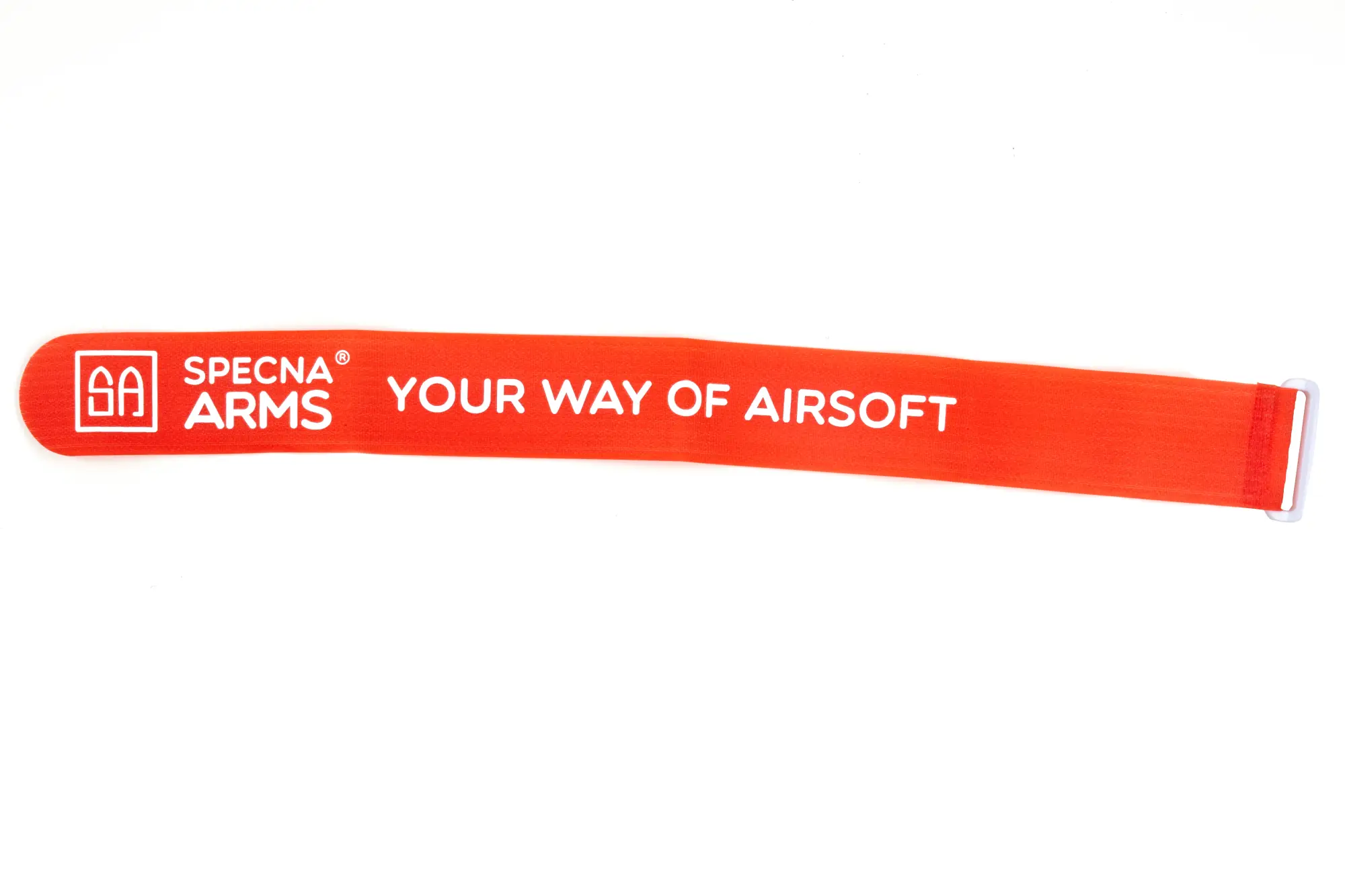 Opaska została wykonana z taśmy z rzepem, dzięki czemu możemy ją szybko i łatwo zamocować na ramieniu gracza. Użycie opasek drużynowych Specna Arms pozwoli na sprawny podział oraz identyfikację graczy podczas airsoftowych rozgrywek i symulacji.