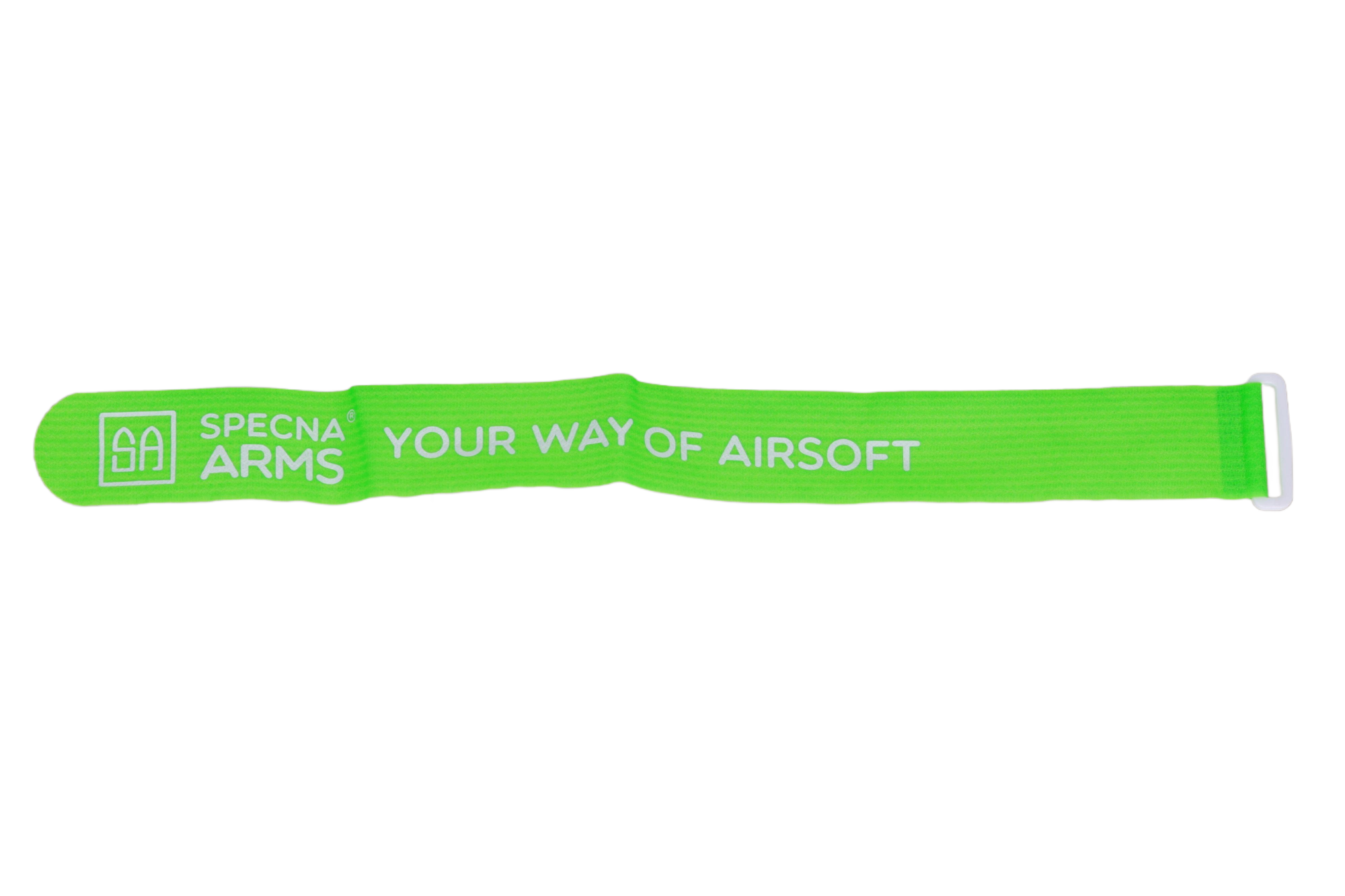 Opaska została wykonana z taśmy z rzepem, dzięki czemu możemy ją szybko i łatwo zamocować na ramieniu gracza. Użycie opasek drużynowych Specna Arms pozwoli na sprawny podział oraz identyfikację graczy podczas airsoftowych rozgrywek i symulacji.