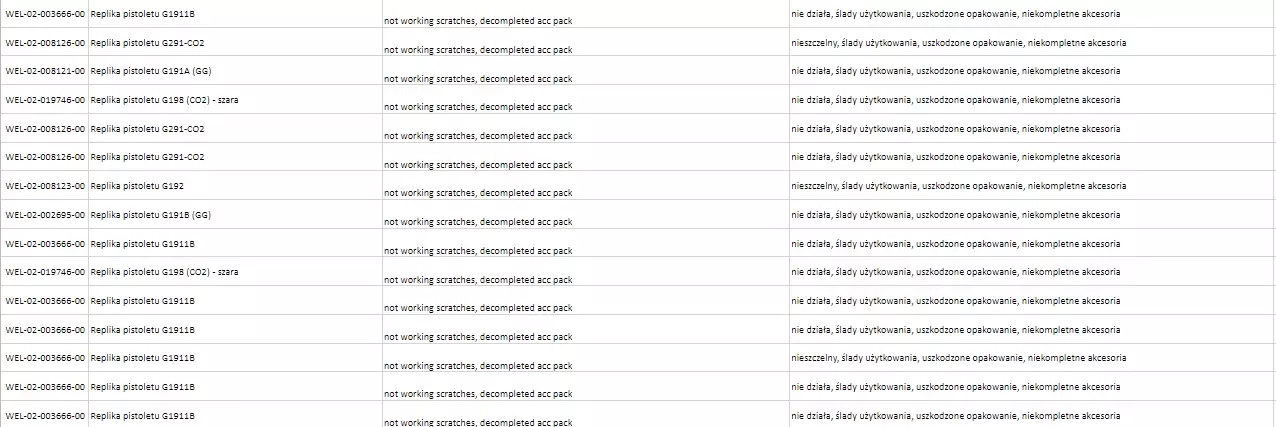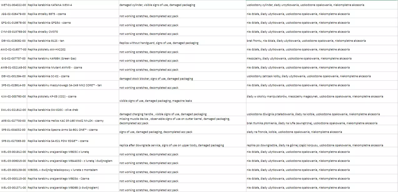 Stan poszczególnych towarów oraz zakres ich ew. uszkodzeń, powodu przeceny znajdziesz pod linkiem: