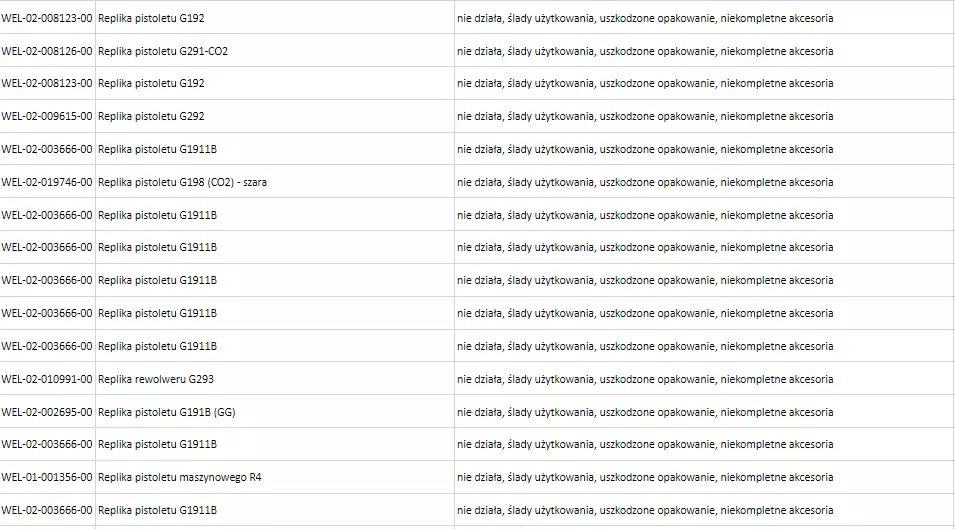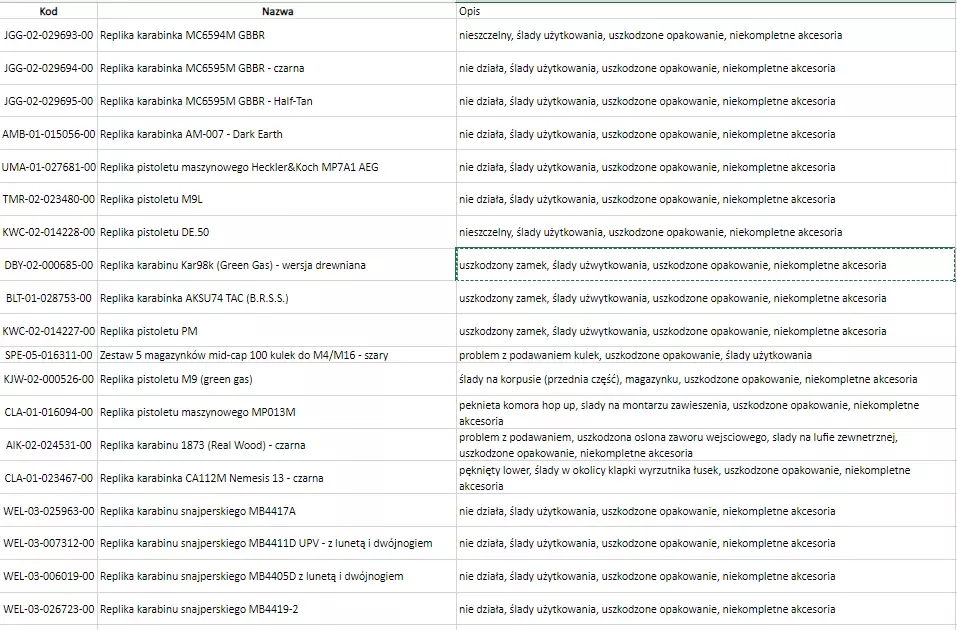 Stan poszczególnych towarów oraz zakres ich ew. uszkodzeń, powodu przeceny znajdziesz pod linkiem: