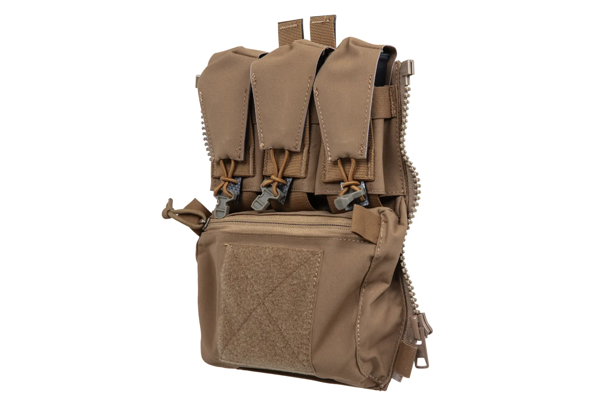 Dodatkowo panel posiada dolną kieszeń zamykaną na zamek błyskawiczny YKK. Kieszeń jest wyścielona odpornym na wilgoć materiałem. Można w niej przechowywać drobne przedmioty jak portfel, mapa, multitool, opatrunki medyczne.