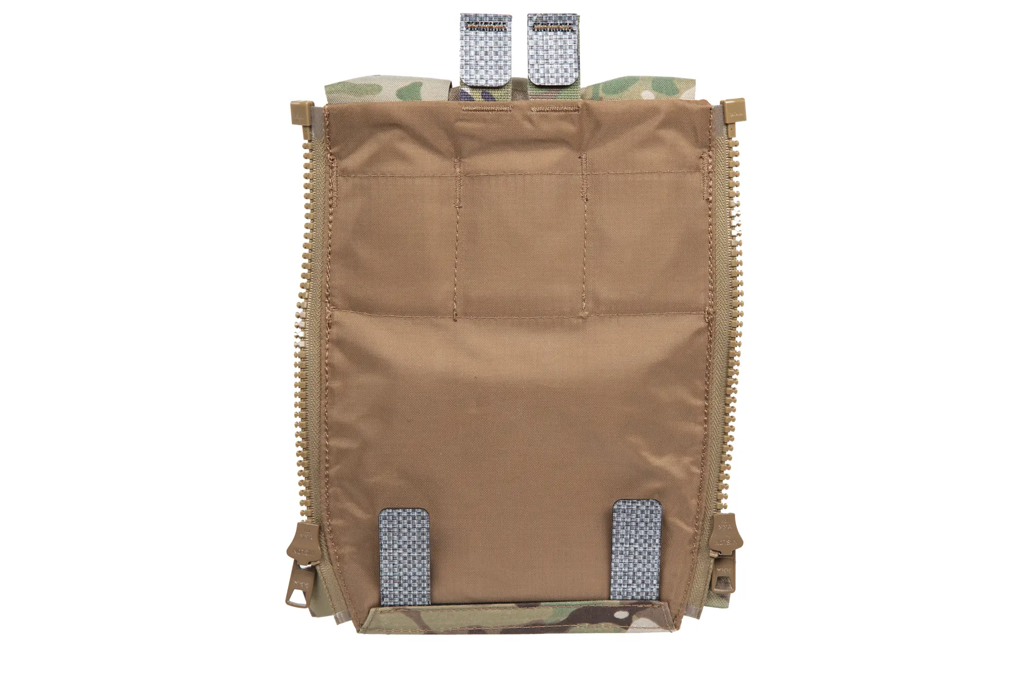 Dodatkowo panel posiada dolną kieszeń zamykaną na zamek błyskawiczny YKK. Kieszeń jest wyścielona odpornym na wilgoć materiałem. Można w niej przechowywać drobne przedmioty jak portfel, mapa, multitool, opatrunki medyczne.