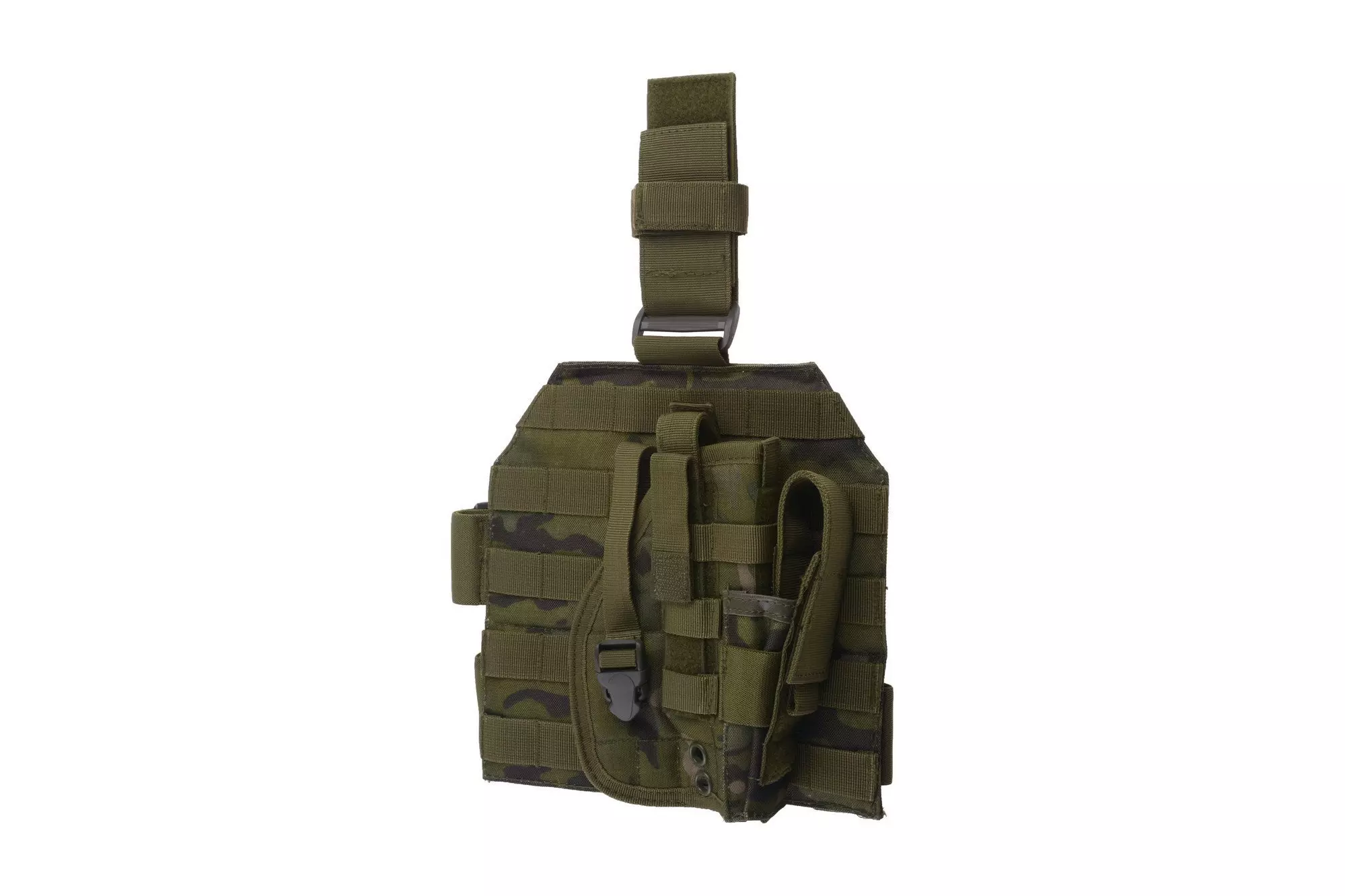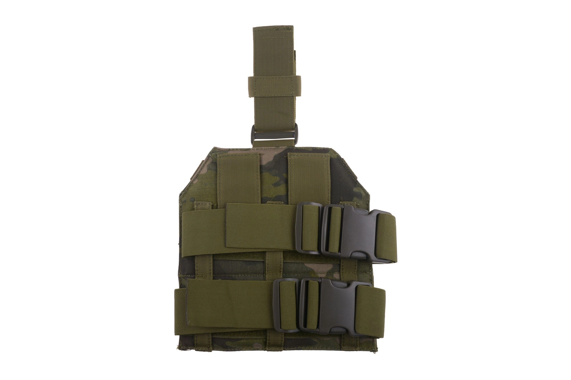 Panel udowy wykonany jest z nylonu. Montuje się go na pas biodrowy oraz dwoma regulowanymi pasami na udo. Pasy na udo wykonane są z elastycznego materiału, dodatkowo posiadają regulację umożliwiającą dostosowanie ich do obwodu uda użytkownika. Panel pokryty jest palsami zgodnymi z systemem Molle. Kabura uniwersalna montowana na Molle posiada dodatkowo ładownicę na zapasowy magazynek.
