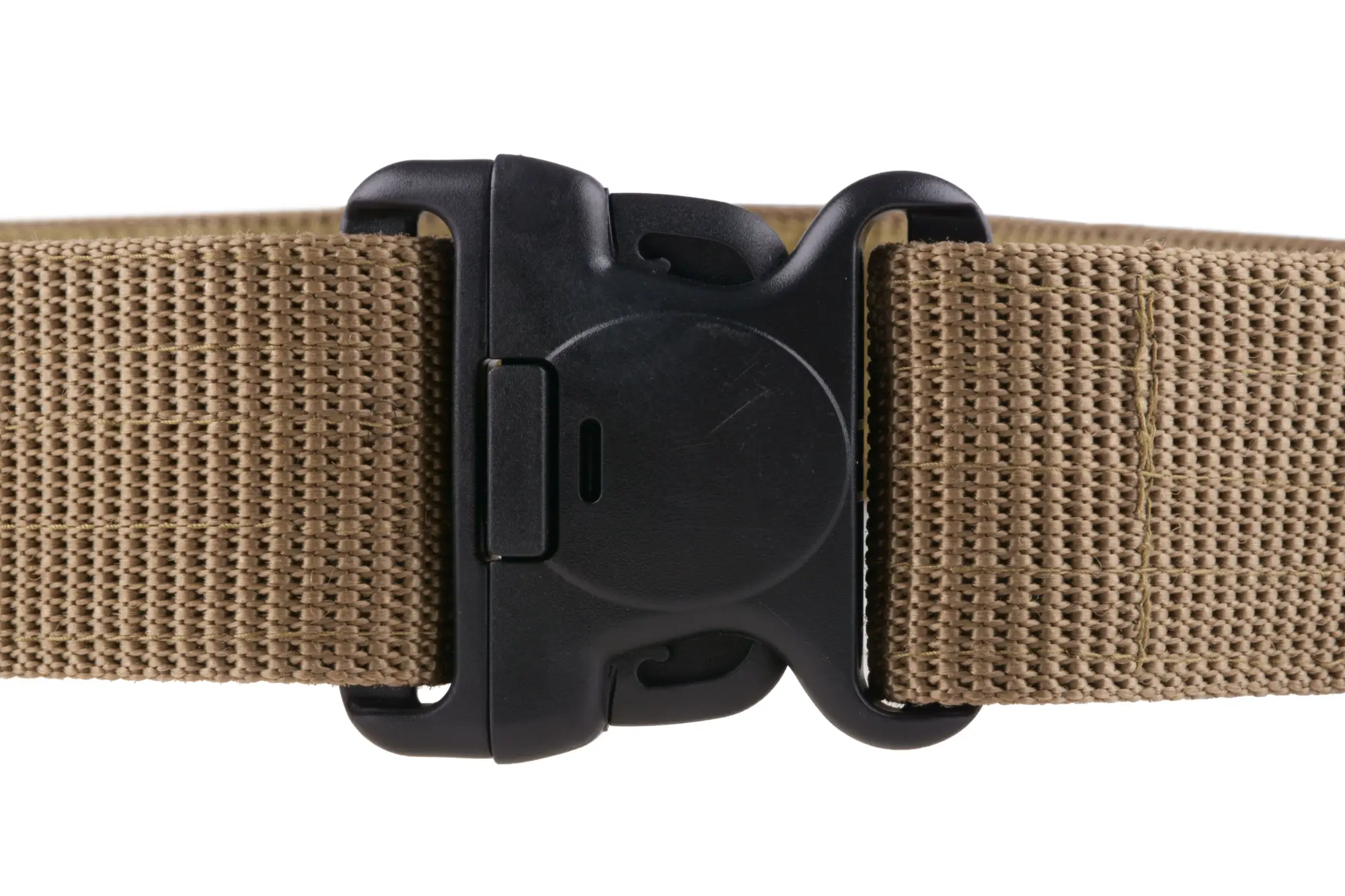 Pas taktyczny wykonany jest ze sztywnej plecionki nylonowej. Na całej długości pokryty jest rzepem, dzięki czemu możliwe jest wyregulowanie jego długości do maksymalnego obwodu 1000mm. Zapinany jest za pomocą dużej klamry wykonanej z tworzywa.