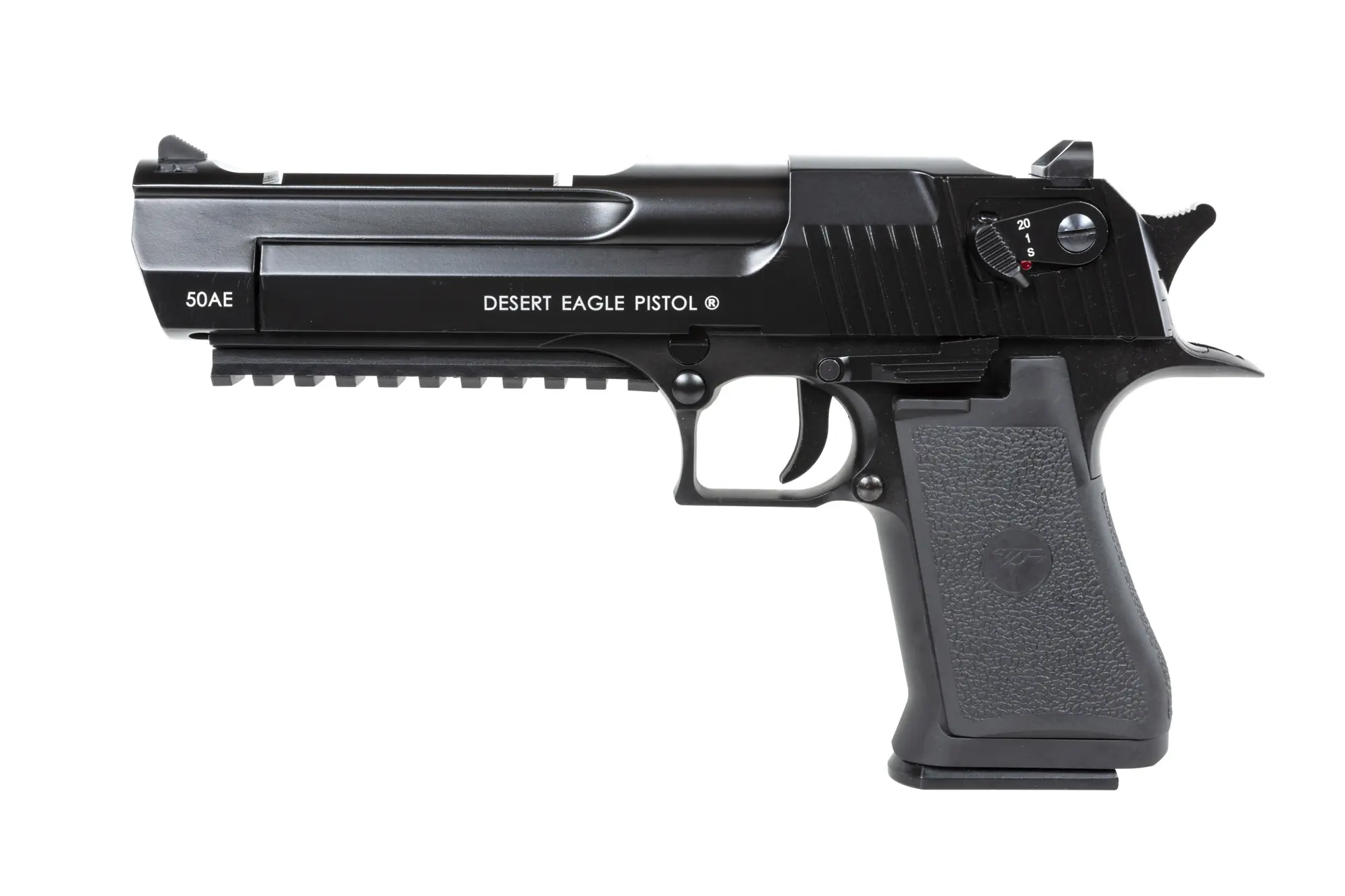 Wykonana z wysokiej jakości, elastycznego tworzywa sztucznego oraz jednolitego stopu cynku i aluminium replika legendarnego pistoletu Desert Eagle .50AE produkcji firmy CyberGun – najbardziej charakterystycznego modelu z tej rodziny. Z metalu wykonano suwadło oraz większość drobnych elementów, z tworzywa sztucznego zaś – szkielet pistoletu.