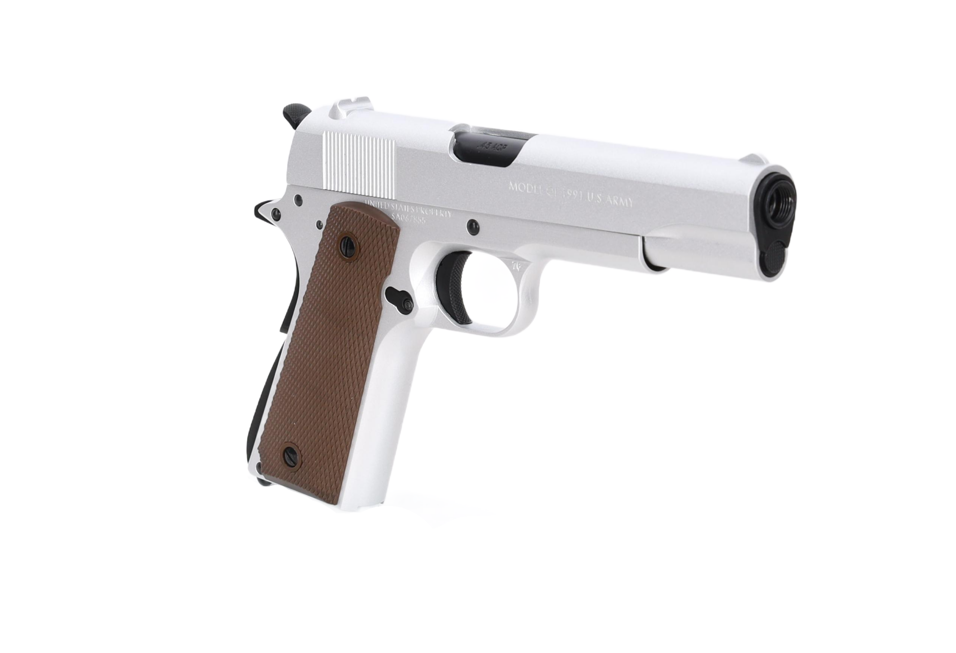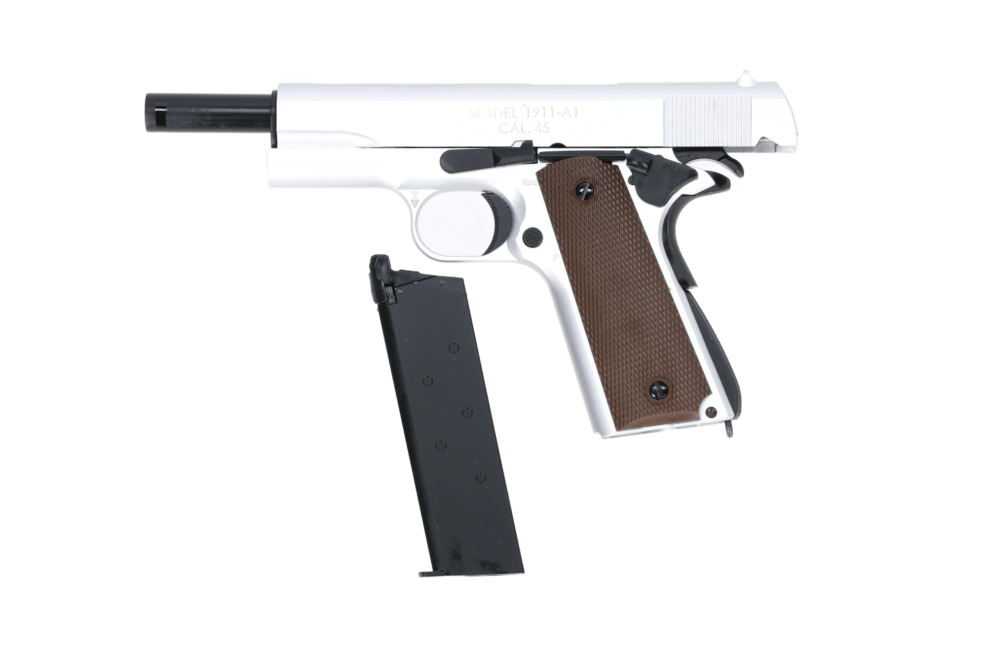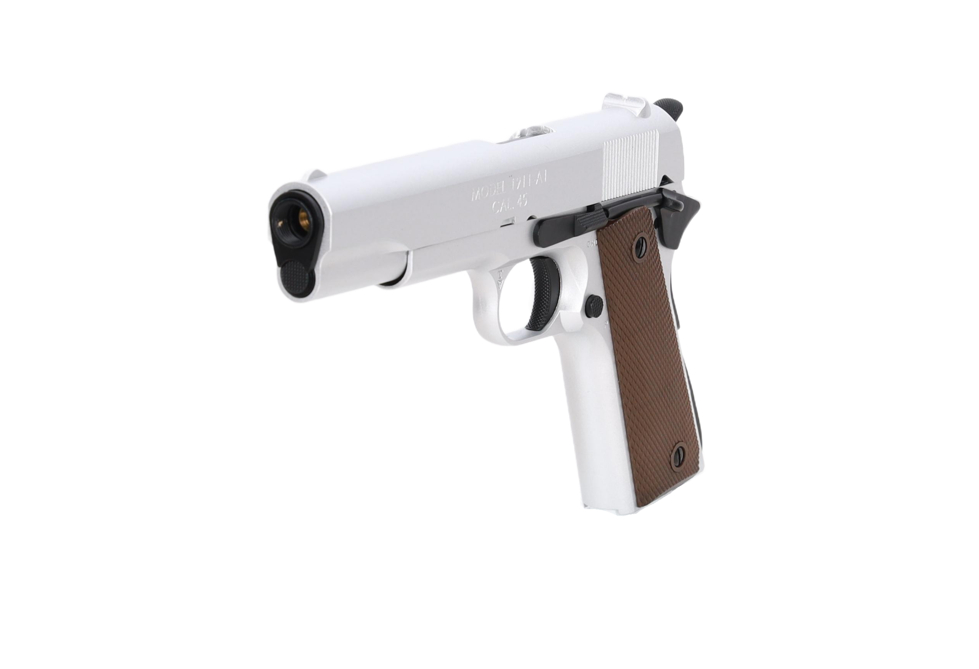 Wykonany przy użyciu maszyn CNC zamek z oznaczeniami “MODEL 1911-A1 CAL. 45” doda całości realizmu.