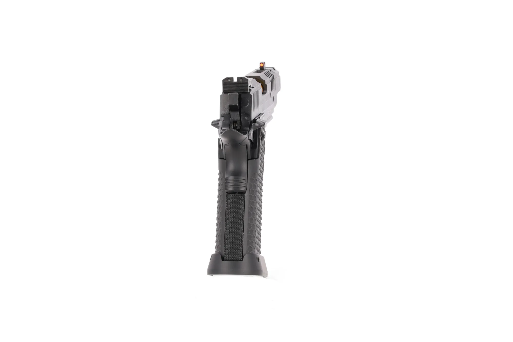 Model wyposażony został w światłowodową muszkę oraz szczerbinkę, która posiada prostą regulację góra-dół, prawo-lewo. Na końcu lufy znajduje się kompensator, a w celu uzyskania przewagi nad przeciwnikiem, pod lufą znajduje się szyna pozwalająca zamocować laser lub latarkę a na zamku znajdują się nacięcia, które ułatwią przeładowanie. Zostając przy zamku, należy zwrócić uwagę na wycięcia na nim – umożliwia to podgląd na złotą lufę zewnętrzną. Całość przykuwa uwagę ze względu na niecodzienny i elegancki design –powodując, że replika jest wyjątkowa i posiada niepowtarzalny wygląd, jednocześnie sam zamek został lekko odchudzony.