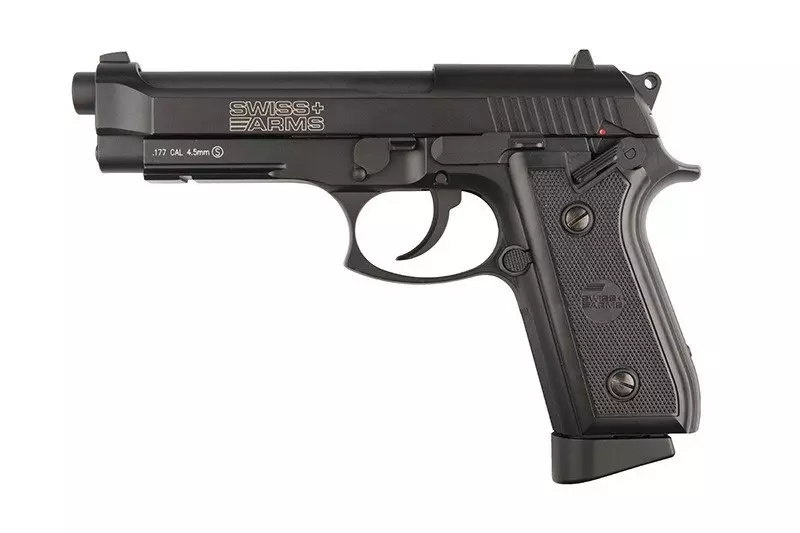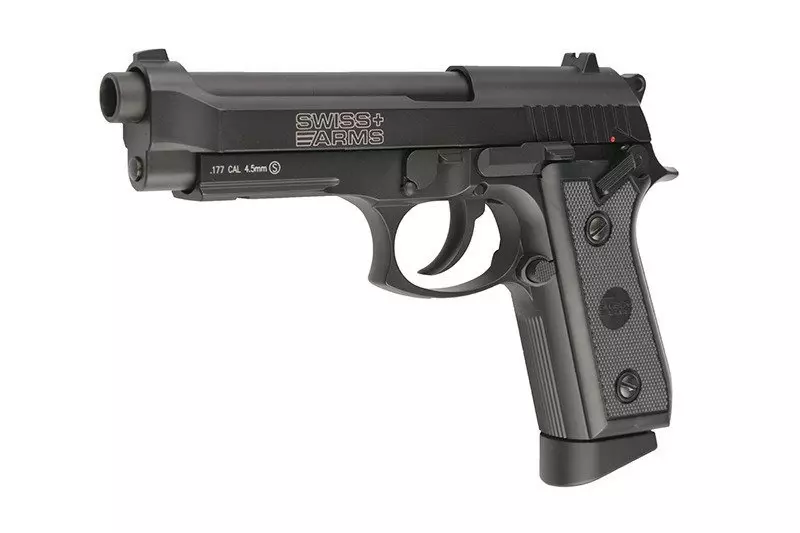 Wykonana w całości z metalu, ciężka replika Beretty 92. Pistolet strzela śrutem kulistym typu BB (4,5 mm). Napęd stanowi 12-gramowy nabój CO2 umieszczany w magazynku mieszczącym 21 śrucin. Pistolet działa – podobnie jak w modelu na ostrą amunicję – zarówno w systemie SA (Single Action) jak i DA (Double Action). Pistolet na korpusie posiada oryginalne oznaczenia Swiss Arms, szwajcarskiej firmy zajmującej się produkcją broni strzeleckiej.