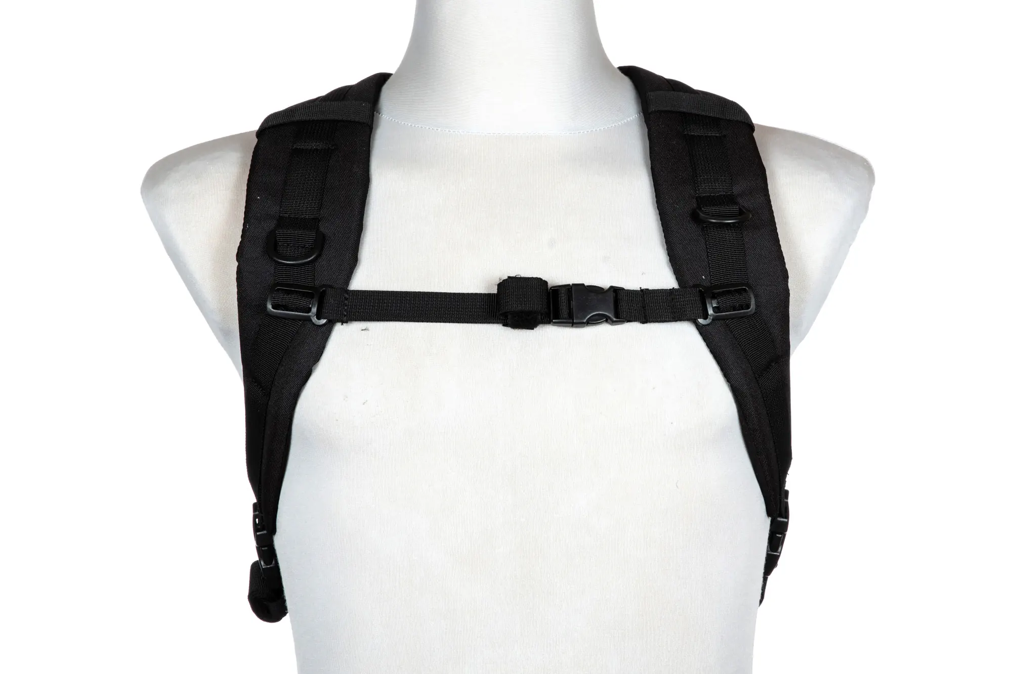 System nośny plecaka stanowią tradycyjne szelki z regulacją, obszyte siatką dystansową. Szelki połączyć można regulowanym pasem piersiowym.