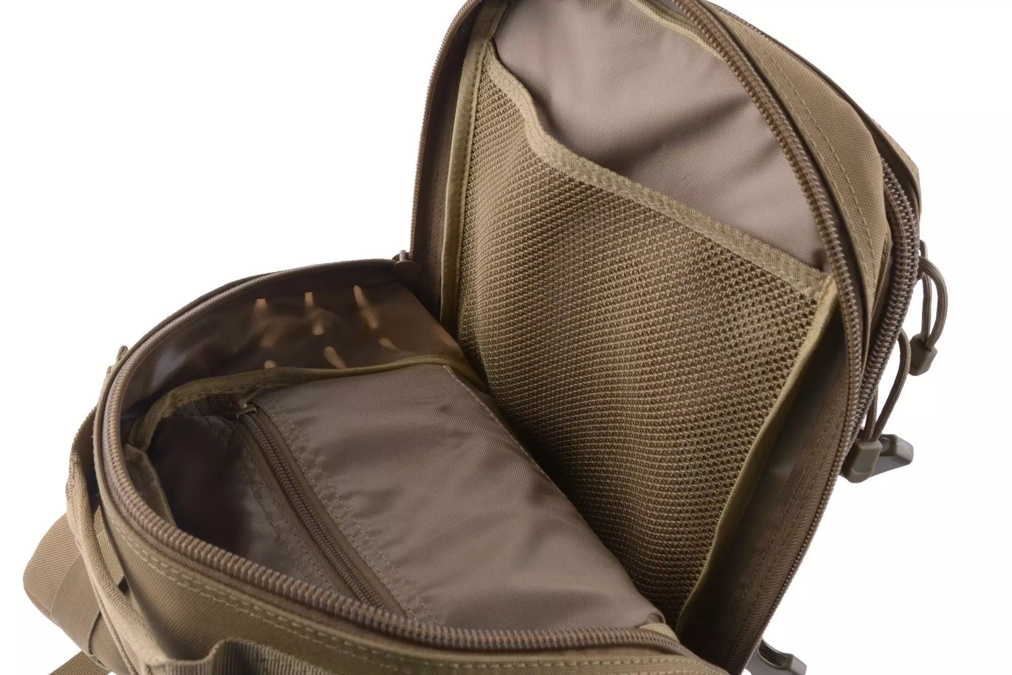 Wygodny plecak Assault Pack LC wykonany jest z wytrzymałego nylonu. Dzięki dobremu rozplanowaniu kieszeni oraz przegród plecak jest bardzo pojemny, mimo niewielkich rozmiarów. Szelki regulowane są na wysokości barków. Lekki pas biodrowy pozwoli na wygodne noszenie plecaka nawet z większym obciążeniem. Zewnętrzna część plecaka wykonano w technologii Laser-Cut, zamiast standardowych palsów MOLLE znajdziemy specjalne, wycięte laserem otwory do których zamocować można dowolne ładownice czy oporządzenie w standardzie MOLLE.