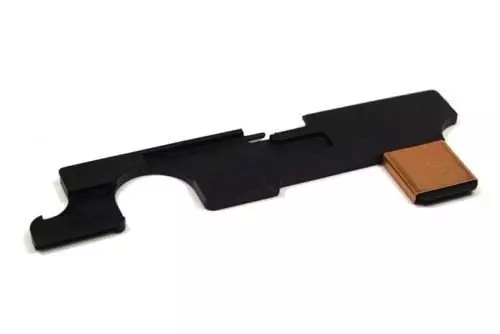 Wykonana z wytrzymałego tworzywa płytka selektora ognia do gearboxa V2 do replik typu M16. Dzięki zastosowaniu wysokiej jakości materiałów płytka jest odporna na działanie wysokiej temperatury, a także zapewnia bezawaryjną prace selektora ognia w replice.