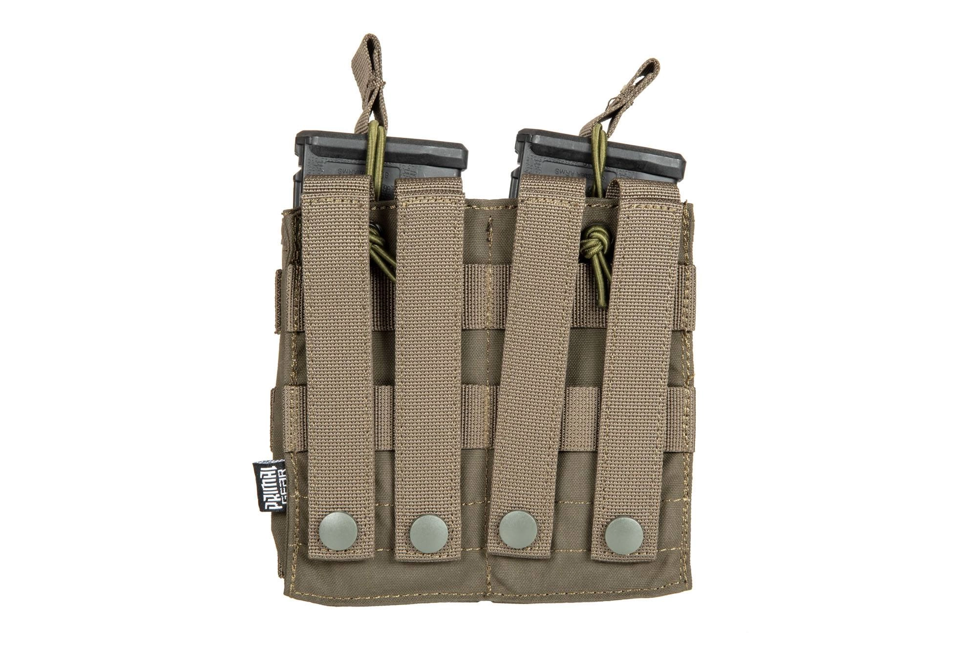 Wykonana z lekkiego i wytrzymałego materiału Aspen 500D ładownica typu shingle na 2 magazynki typu AK / M4 / G36 oraz wiele innych. Zastosowanie wytrzymałych szwów oraz wysokiej jakości akcesoriów jak taśmy dodatkowo zwiększają odporność i trwałość. Każdy magazynek jest od góry zabezpieczony przed wypadnięciem elastyczną linką typu shock-cord.