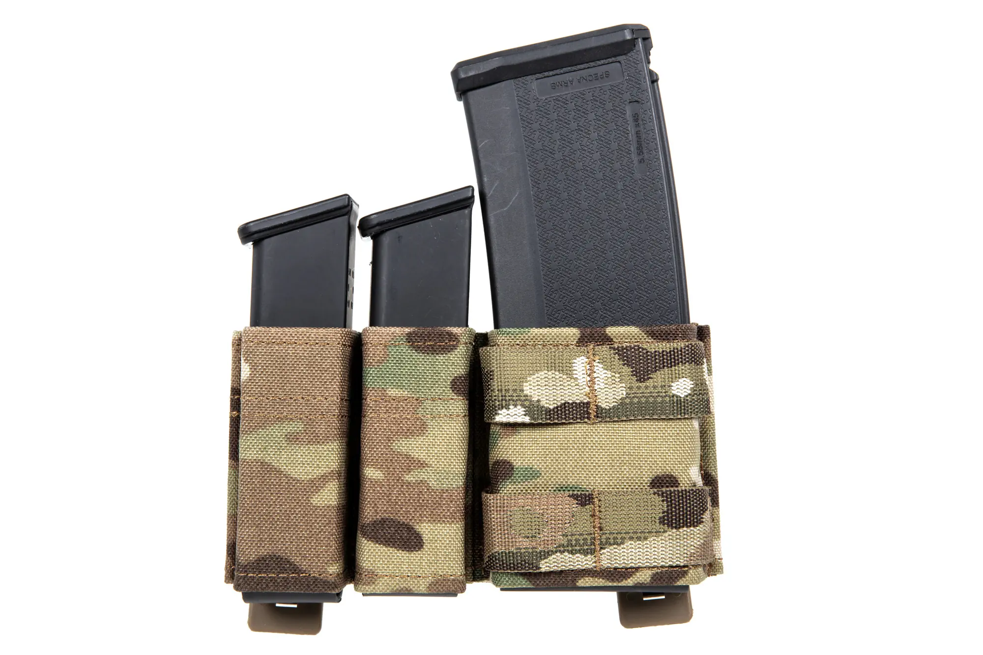Przód komory na magazynek 5.56 mm posiada dodatkowe dwa rzędy taśmy Molle, co pozwoli zamontować dodatkowy osprzęt.
