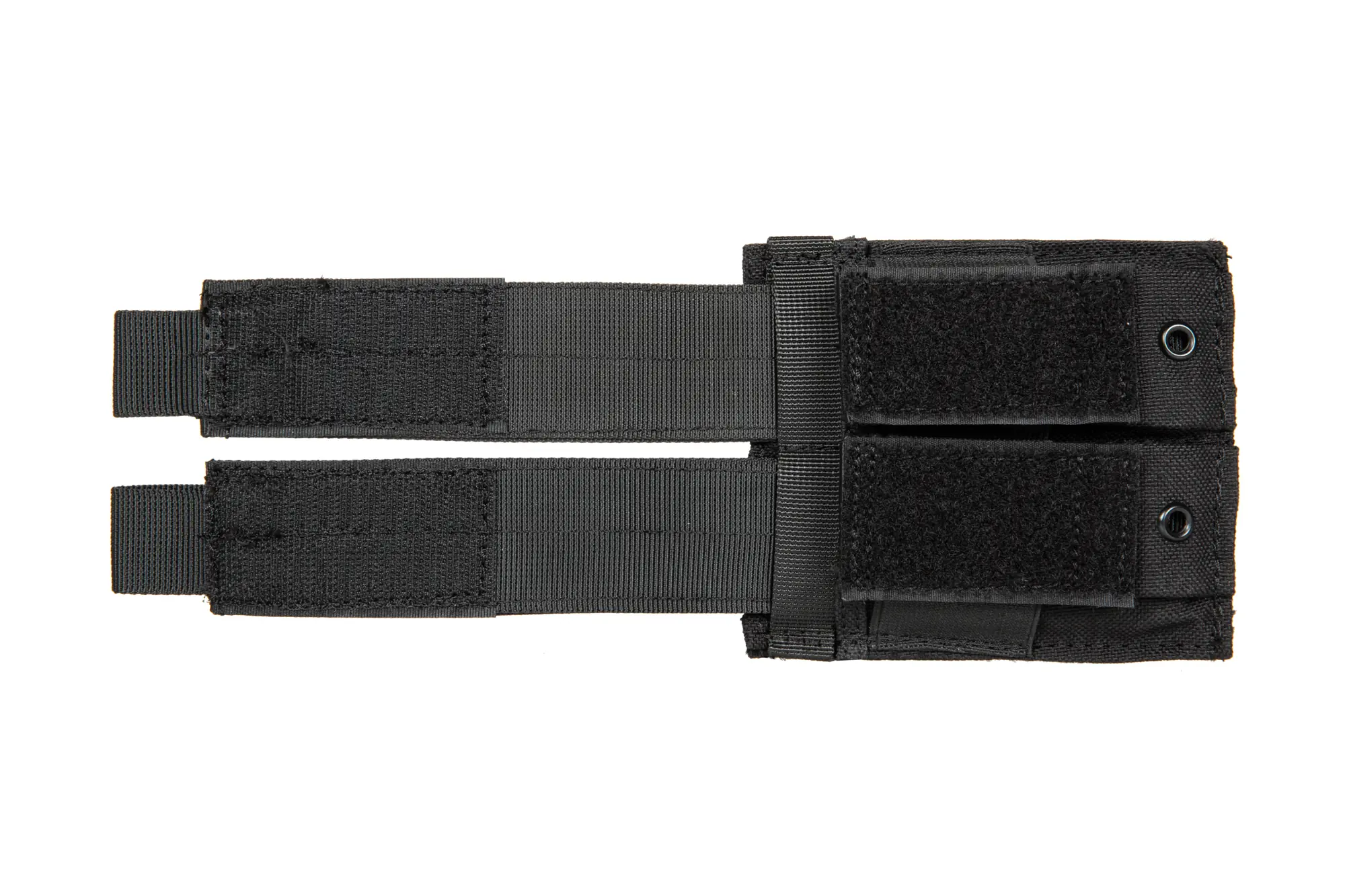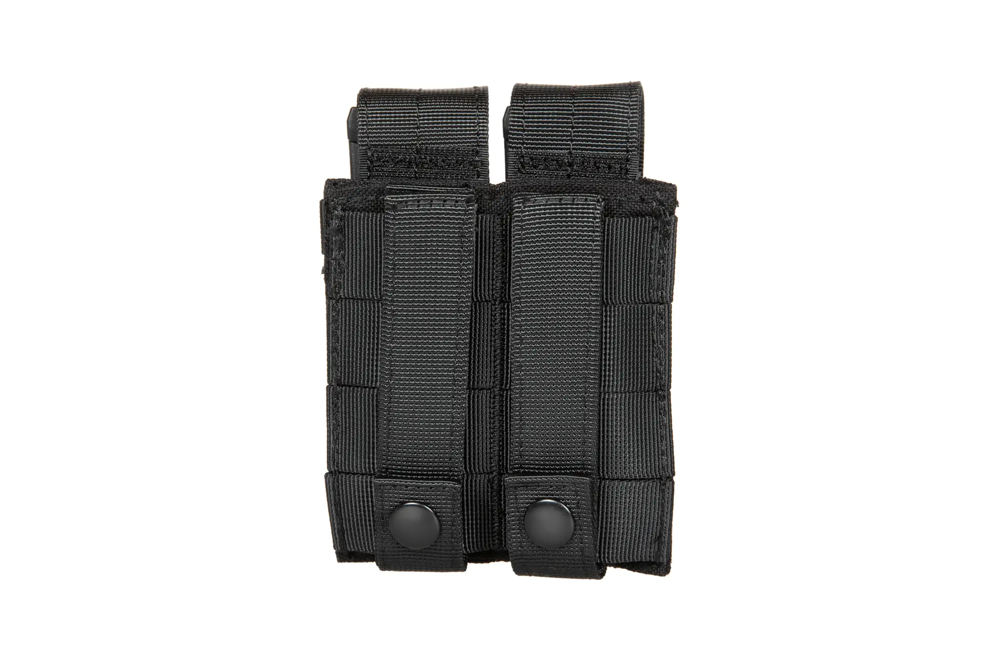 Wykonana z wytrzymałego Nylonu 1000D ładownica mieszcząca dwa magazynki pistoletowe. Na bokach ładownicy naszyto elastyczne ściągacze pozwalające na bezpieczne przenoszenie zarówno magazynków jedno i dwurzędowych.