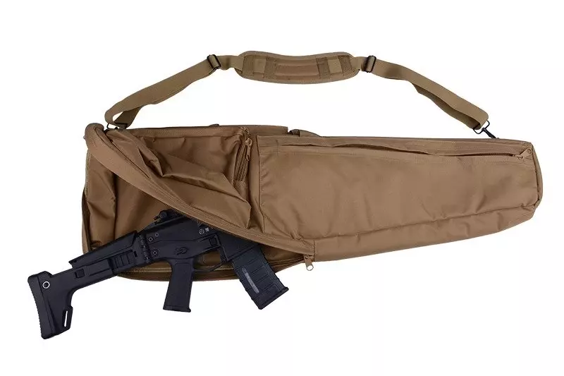 Prosty pokrowiec o długości 1000mm. Transportowana zawartość chroniona jest przez grubą warstwę gąbki oraz wzmocnioną warstwę nylonu. Na zewnątrz pokrowca mamy dodatkową kieszeń cargo o wymiarach 320x240mm zdolną pomieścić spory zapas magazynków. Wszyty wewnątrz pas vectro daje możliwość przyczepienia pasa na shellsy lub kabury (brak w zestawie).  Płaska kieszeń o wymiarach 580x190mm niezbędne akcesoria lub broń krótką.