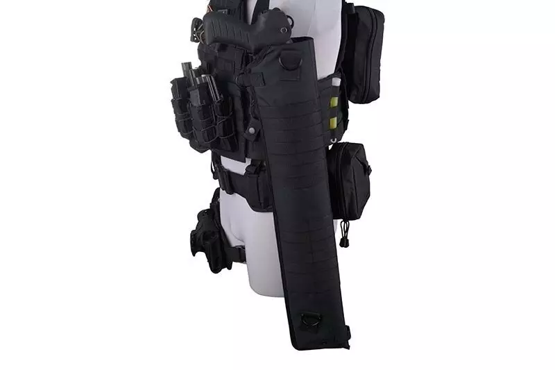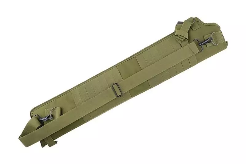 Posiada mocowany na metalowe karabinki pas na ramię o regulowanej długości. U wylotu pokrowca znajduje się zapinana na klamrę fastex taśma zabezpieczająca replikę. W dolnej części umieszczono otwór drenażowy.