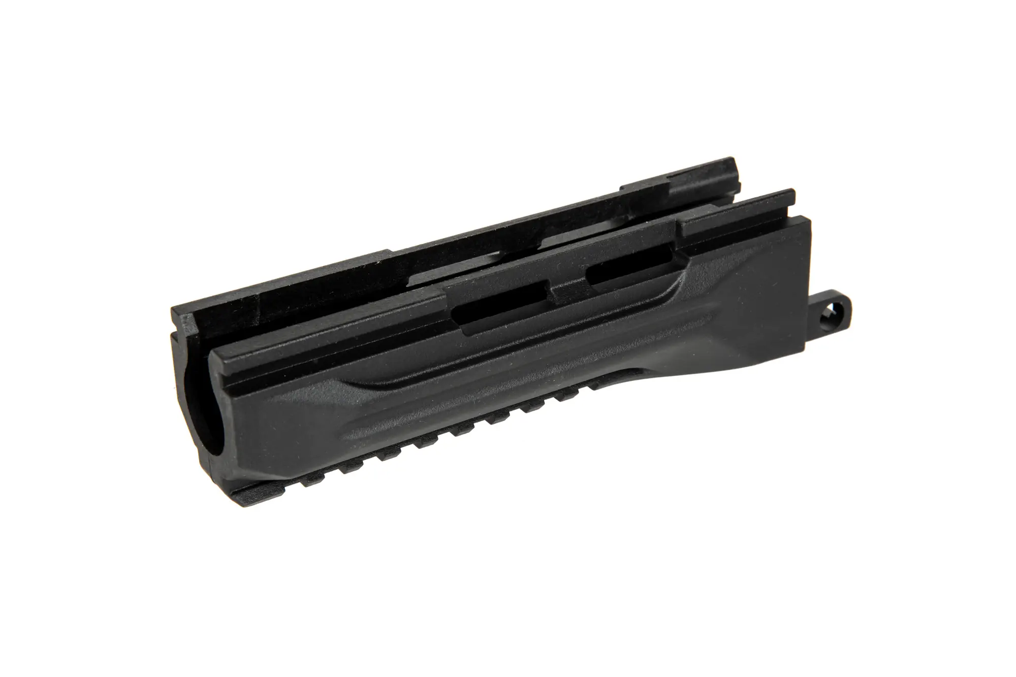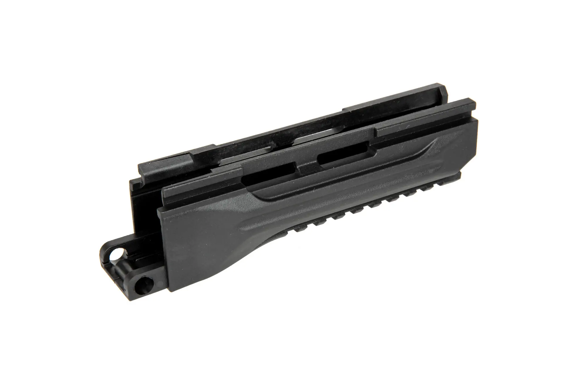 Wykonane z polimerowego tworzywa łoże do replik typu AK-12. W środku znajduje się stalowa sprężyna ustalająca kołek mocujący.