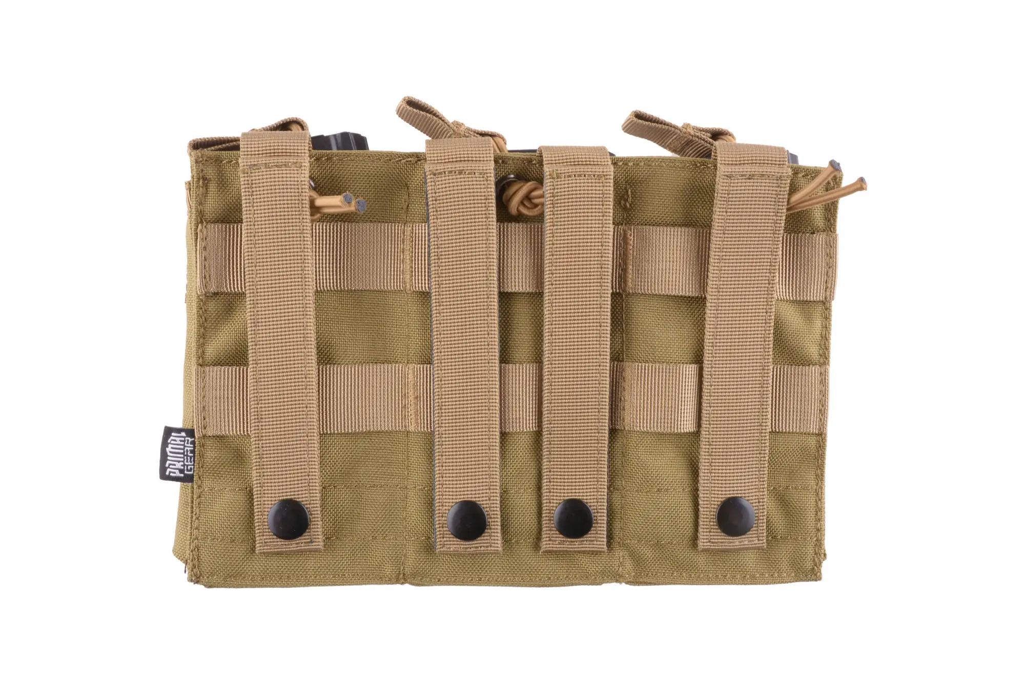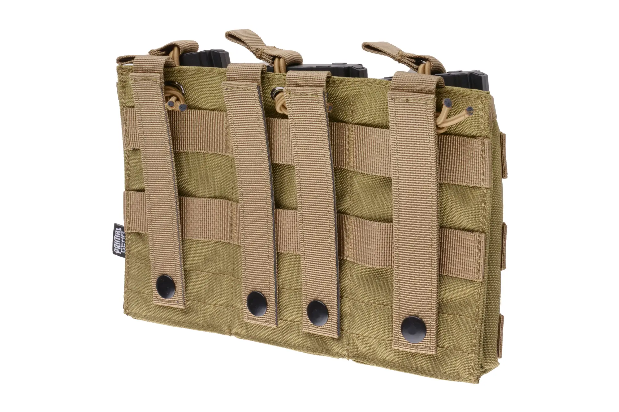 Wykonana z wytrzymałego nylonu przez Primal Gear potrójna ładownica typu shingle na 3 magazynki typu AK / M4 / G36 oraz wiele innych. Magazynek jest od góry zabezpieczony przed wypadnięciem elastyczną linką shock-cord.