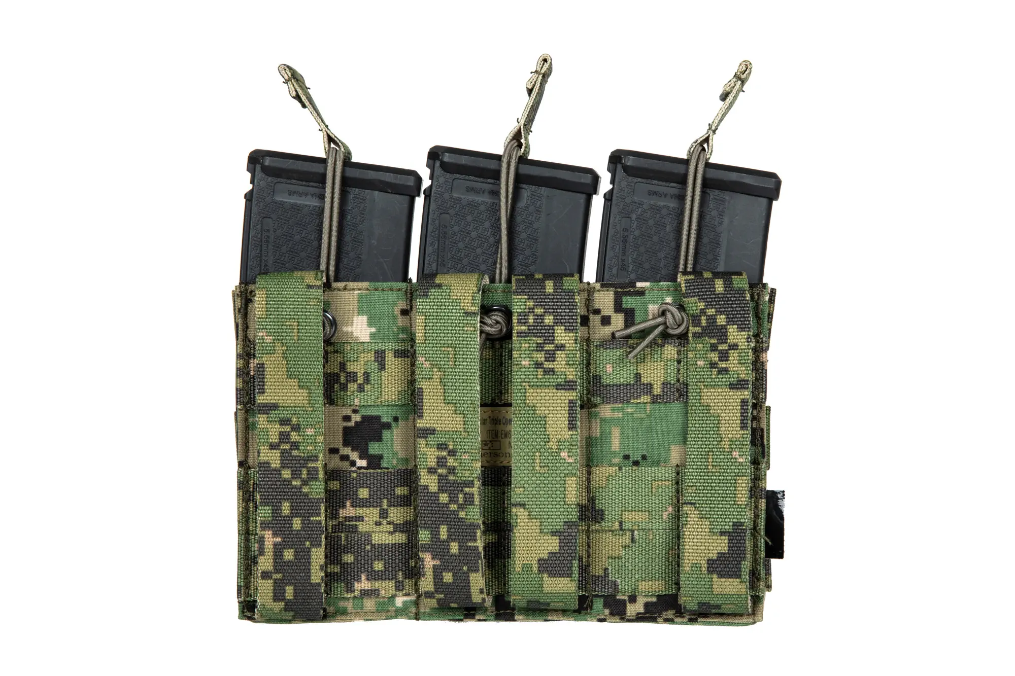 Wykonana z solidnego Nylonu potrójna, otwarta ładownica karabinowa typu “shingle”. Magazynek przed wypadnięciem zabezpiecza uchwyt na elastycznej lince shock-cord. Do oporządzenia mocowana przy użyciu systemu MOLLE/PALS.