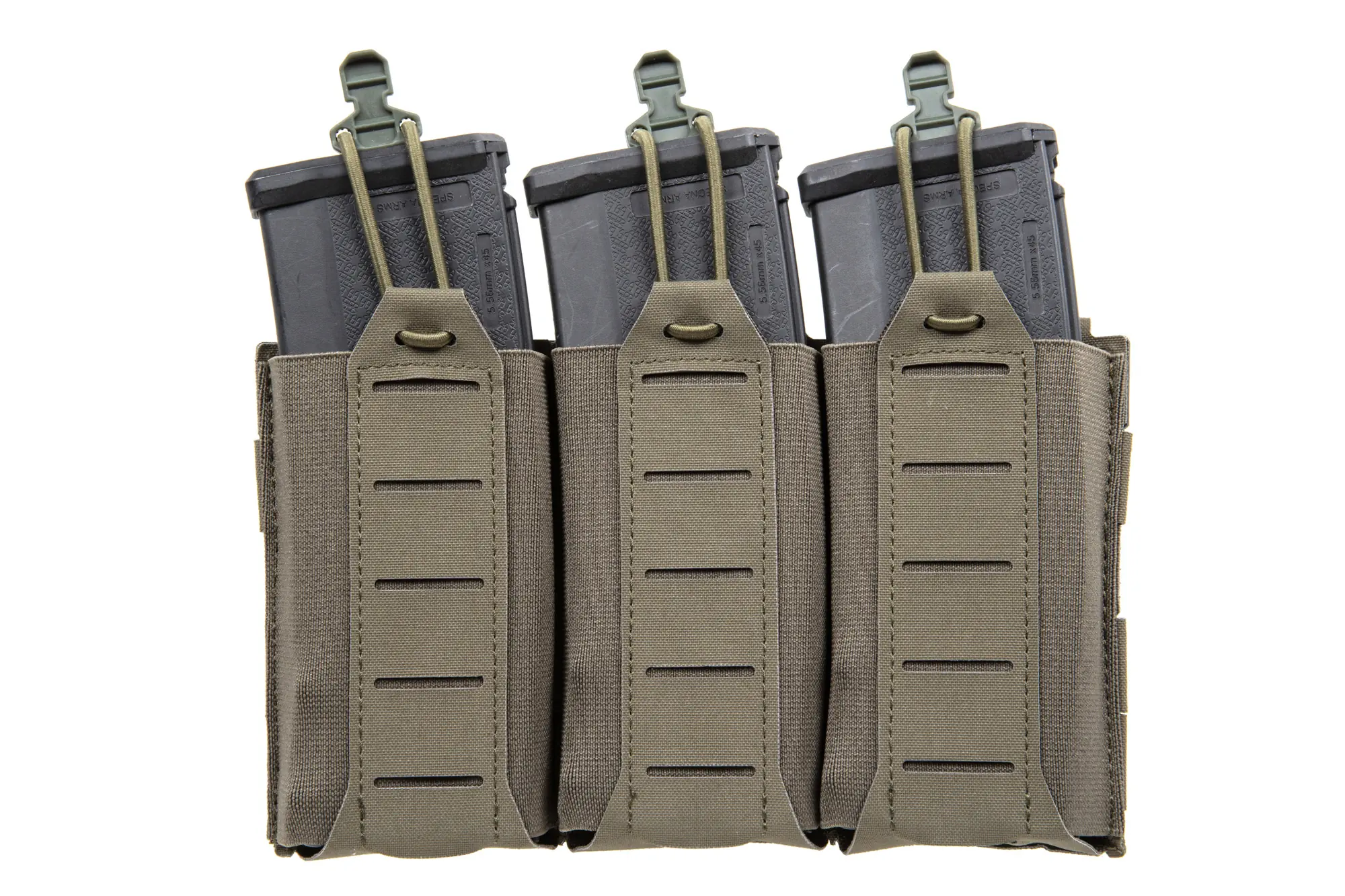 Przód ładownicy został wyposażony w panel Molle Laser-Cut, który pozwoli zamocować dodatkowy osprzęt, jednocześnie sama ładownica jest montowana na pas lub kamizelkę również dzięki mocowaniu Molle.